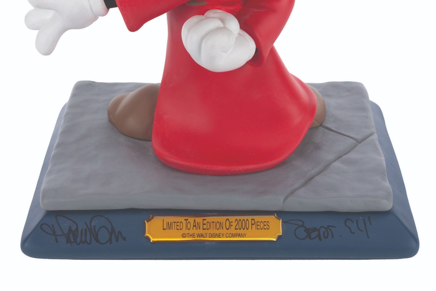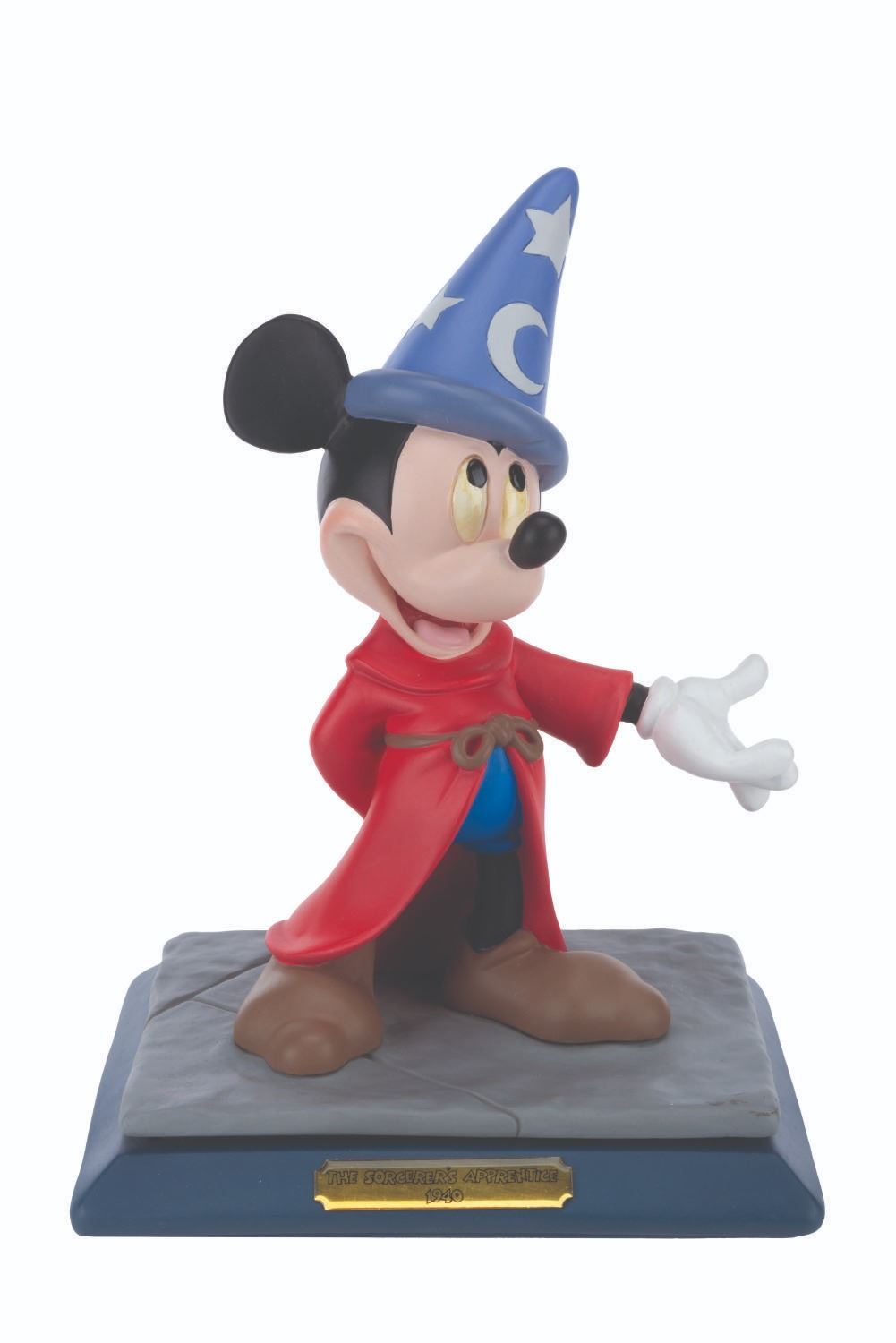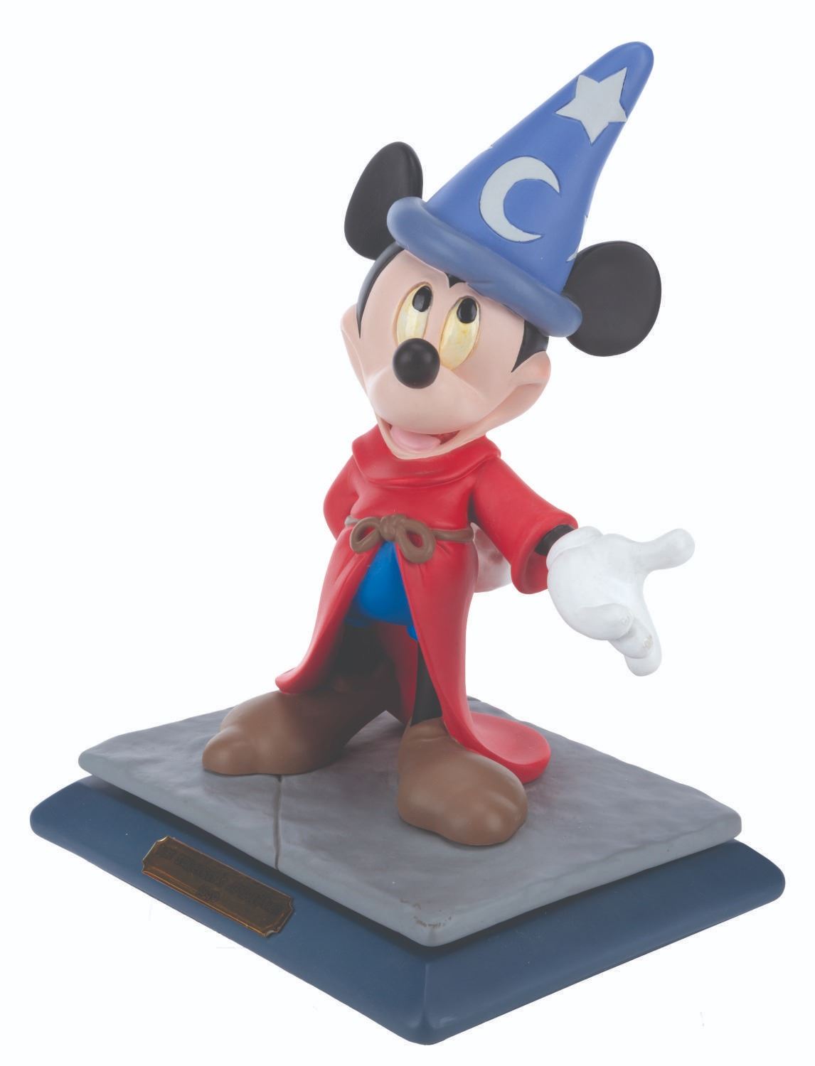 (Disneyana, 1994) A statue of Mickey Mouse as The Sorcerer's Apprentice, produced for the 1994 Disneyana Convention in an edition of 2000 and hand-signed by designer Marc Delle. Measuring 7" x 9" x 12" tall, the resin statue is in good condition with light soiling, paint discoloration, and edge wear.