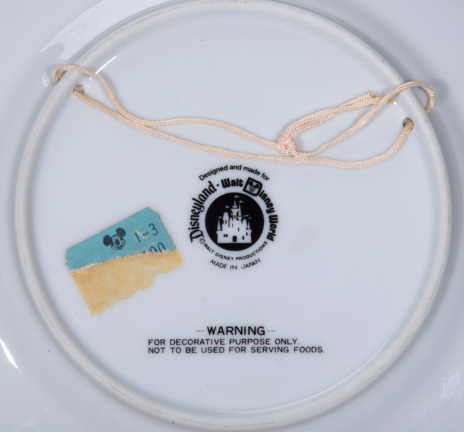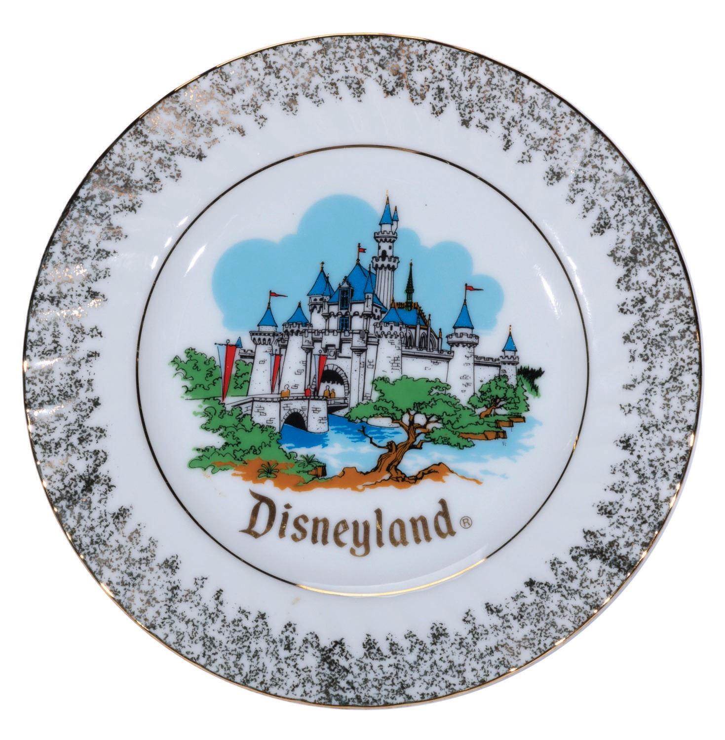 (Disneyland, 1970's) A souvenir Disneyland Castle decorative plate, produced in the 1970's in a vintage style. Measuring 6.5" in diameter, the plate displays in fine condition.