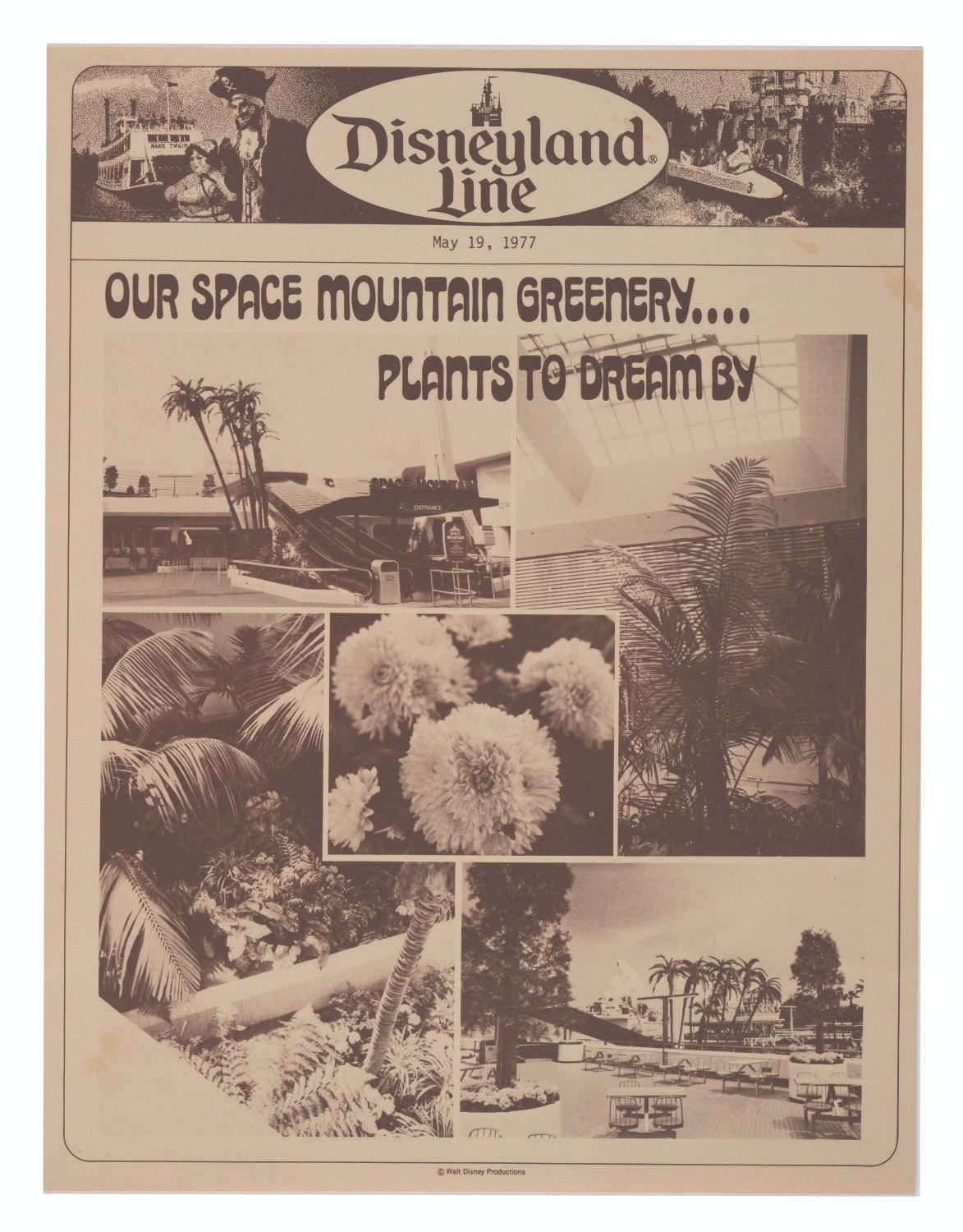 (Disneyland, 1977) A "Summer ‘77 - Cast Premiere Inaugural Space Mountain Flight" Packet issued exclusively to Cast Members at Disneyland, on Wednesday, May 18, 1977. Among the folder's contents are (1) unused bumper sticker, (1) Cast Premiere button, a Special Space Mountain Edition of Disneyland Line magazine, and (2) sequential tickets (numbered "1153" and "1154"). The outer folder measures 9"x12" and its contents are in good condition with discoloration to the sticker, and a few faint creases and surface wear.