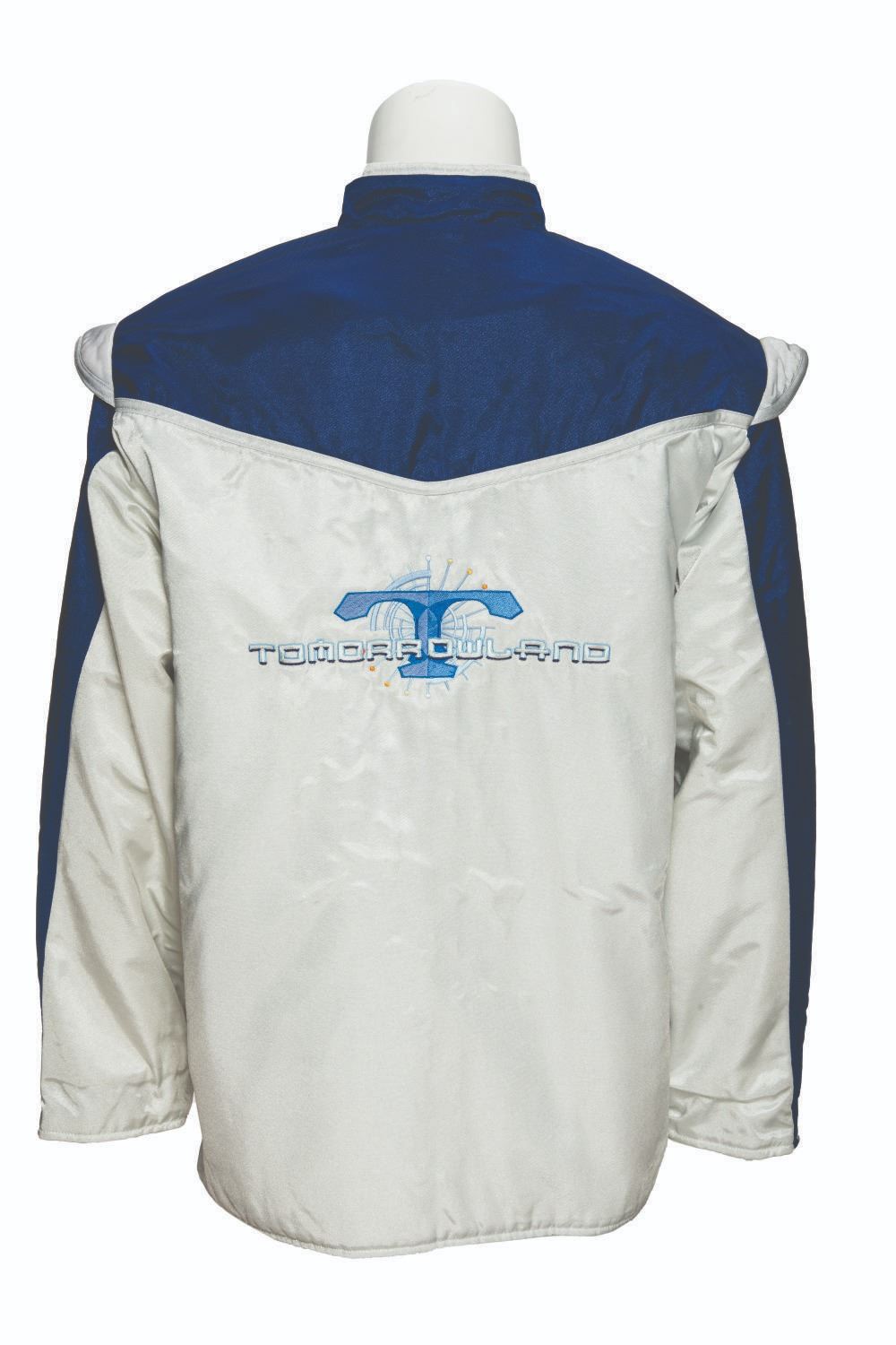 (Disneyland, 2010s) A Space Mountain Cast Member costume jacket featuring the futuristic monogram of Tomorrowland. Measuring a unisex size “L”, the jacket is in very good condition with light wear from Cast use and age.