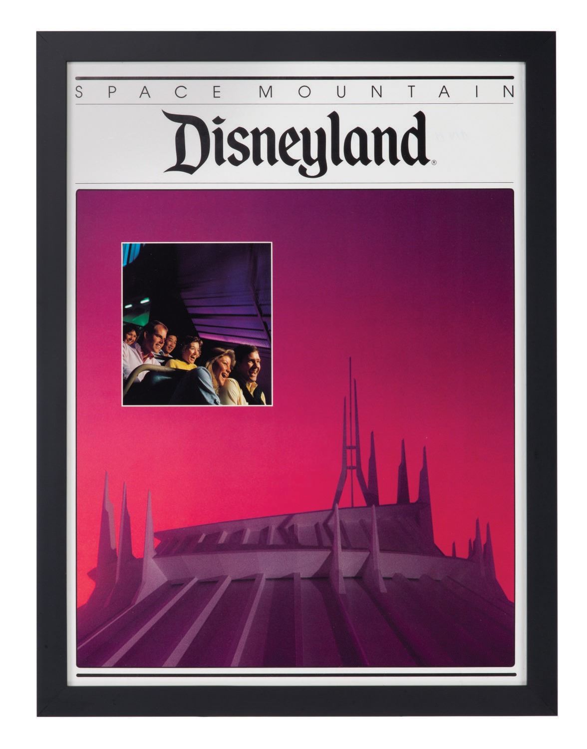 (Disneyland, 1982) A promotional poster of Space Mountain at Disneyland . The poster was part of a series distributed to Travel Agencies and sold in the park in the 1980s. The poster measures 19"x26" and is in fine condition, with some marker spots on the back visible next to "Disneyland."