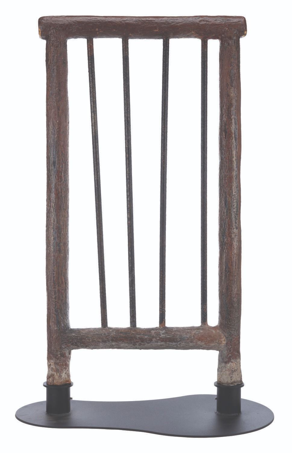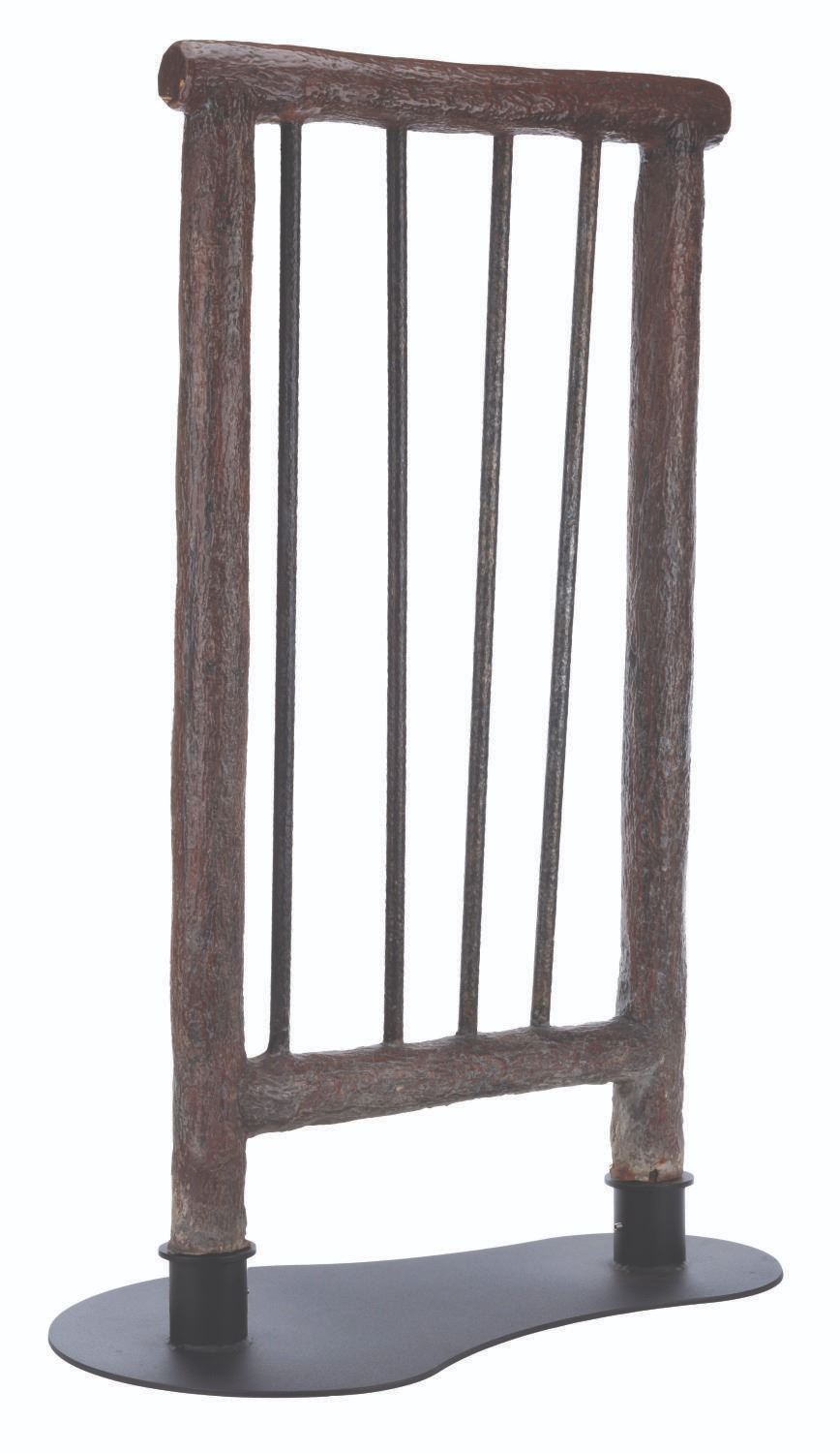 (Disneyland, 2013) A fence section from the queue of Splash Mountain. Measuring 20" x 2.5" x 36" tall on a 25.75" x 15" x 3" tall custom base for a full height of 39", the fence displays in very good condition with typical wear from Park use with light scratches and scuffs. Due to the size and weight of this item, please inquire about shipping rates before bidding.