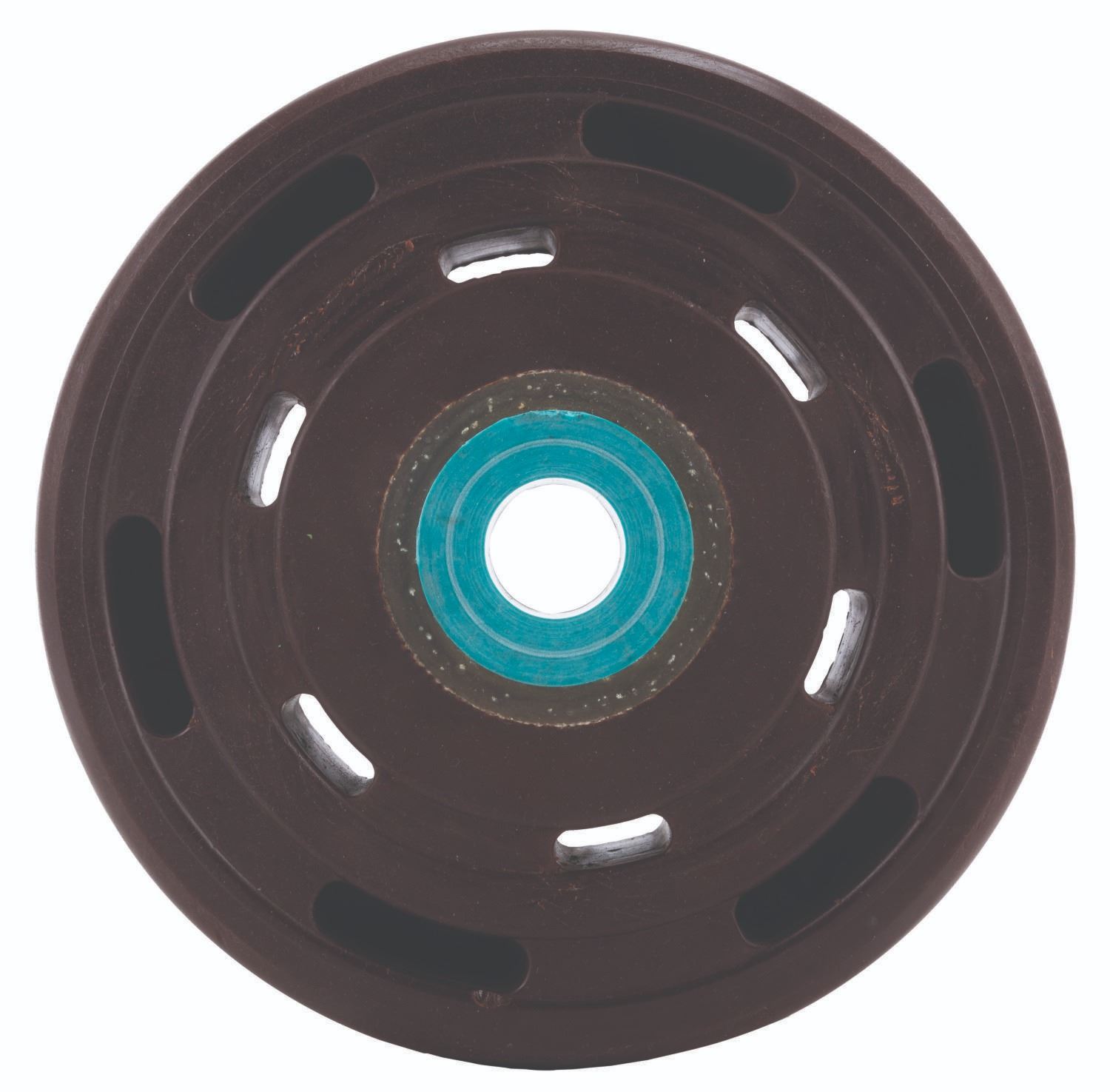 (Disneyland, 1989-2024) A wheel, one of four, that kept a Splash Mountain log vehicle on track. Composed of durable rubber and plastics, the wheel was removed during a rehabilitation or repair. Measuring 9.75" in diameter, the wheel displays in very good condition with typical wear from Park use including scratches, scuffs, light cracks, and discoloration.