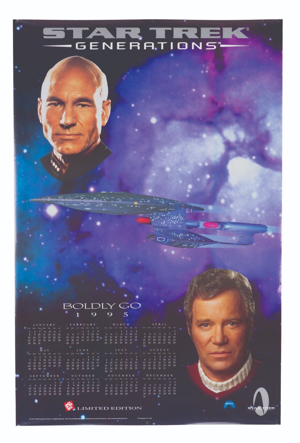 (Paramount, 1994) A 1995 calendar poster for "Star Trek: Generations " released as a Jack in the Box promotion. Measuring 23 " x 35 " the poster is in good condition with light edge wear and creasing.