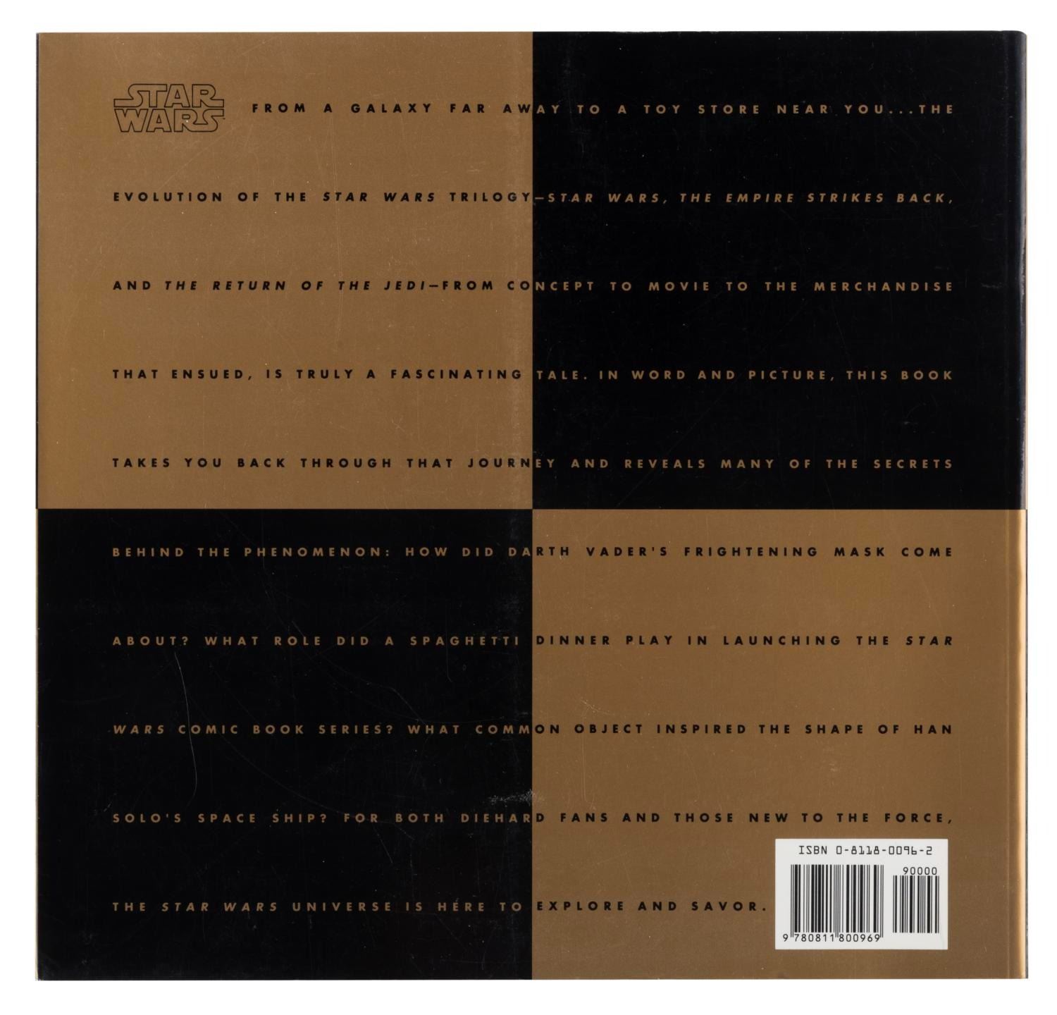 (Chronicle Books, 1992) A softcover book titled Star Wars: From Concept to Screen to Collectible, by Stephen J. Sansweet. This is one of the first major works on Star Wars collectibles, and Sansweet became head of Fan Relations at Lucasfilm Ltd. from 1996 until 2011. Measuring 9.5” x 10”, the book is in good condition with handling wear to the cover, including scuffs, small scratches, and a soft crease along the right edge of the front.