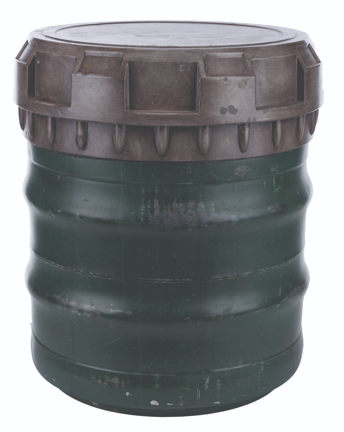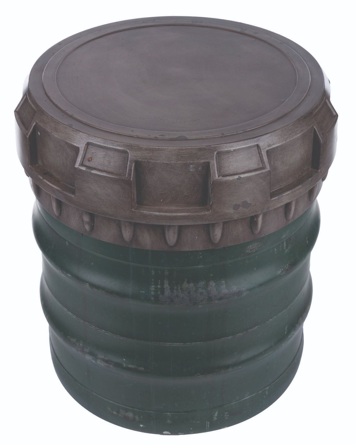 (Disneyland, 2019) A seat from the Docking Bay 7 Food and Cargo restaurant at Star Wars: Galaxy’s Edge in Disneyland. Measuring 15.5" in diameter and 18" tall, the seat displays in very good condition with typical wear from Park use, including scratches and chips.