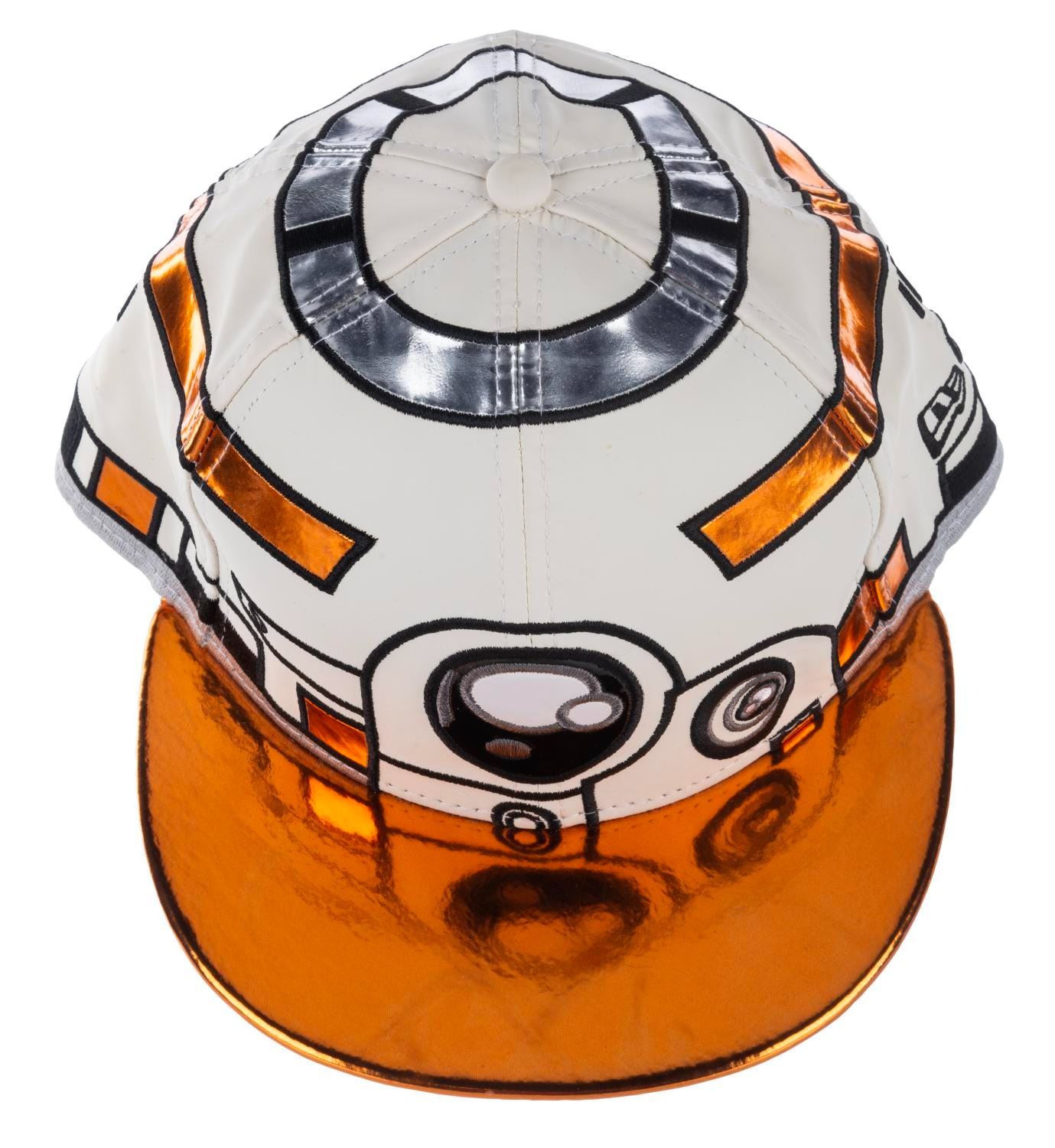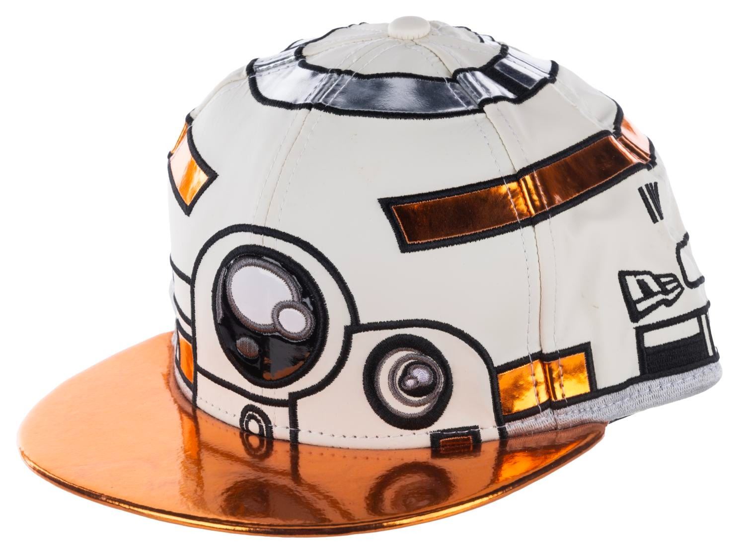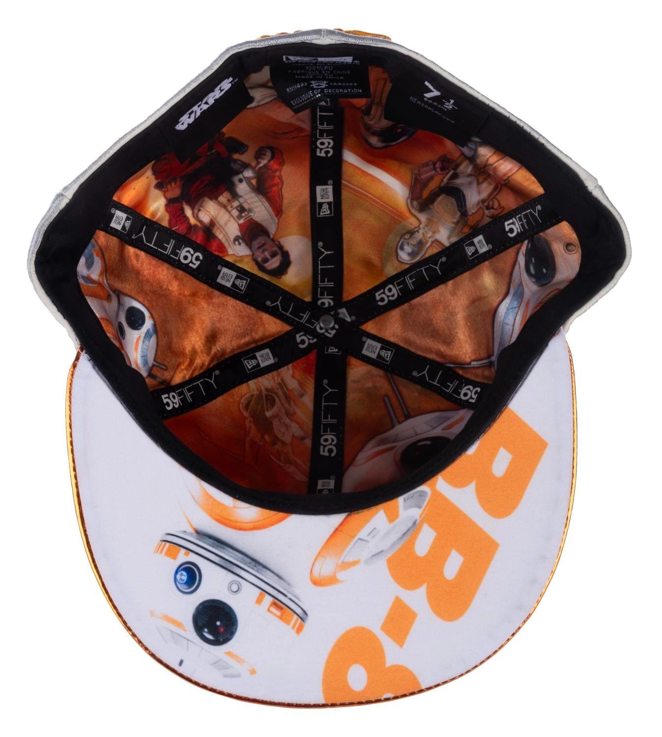 (New Era, 2015) A “Star Wars: The Force Awakens" leather hat resembling the film’s lovable droid, BB-8. The interior of the hat features images of the film’s stars. Labeled a size 7 1/2, the fitted hat is in very good condition with light wear.