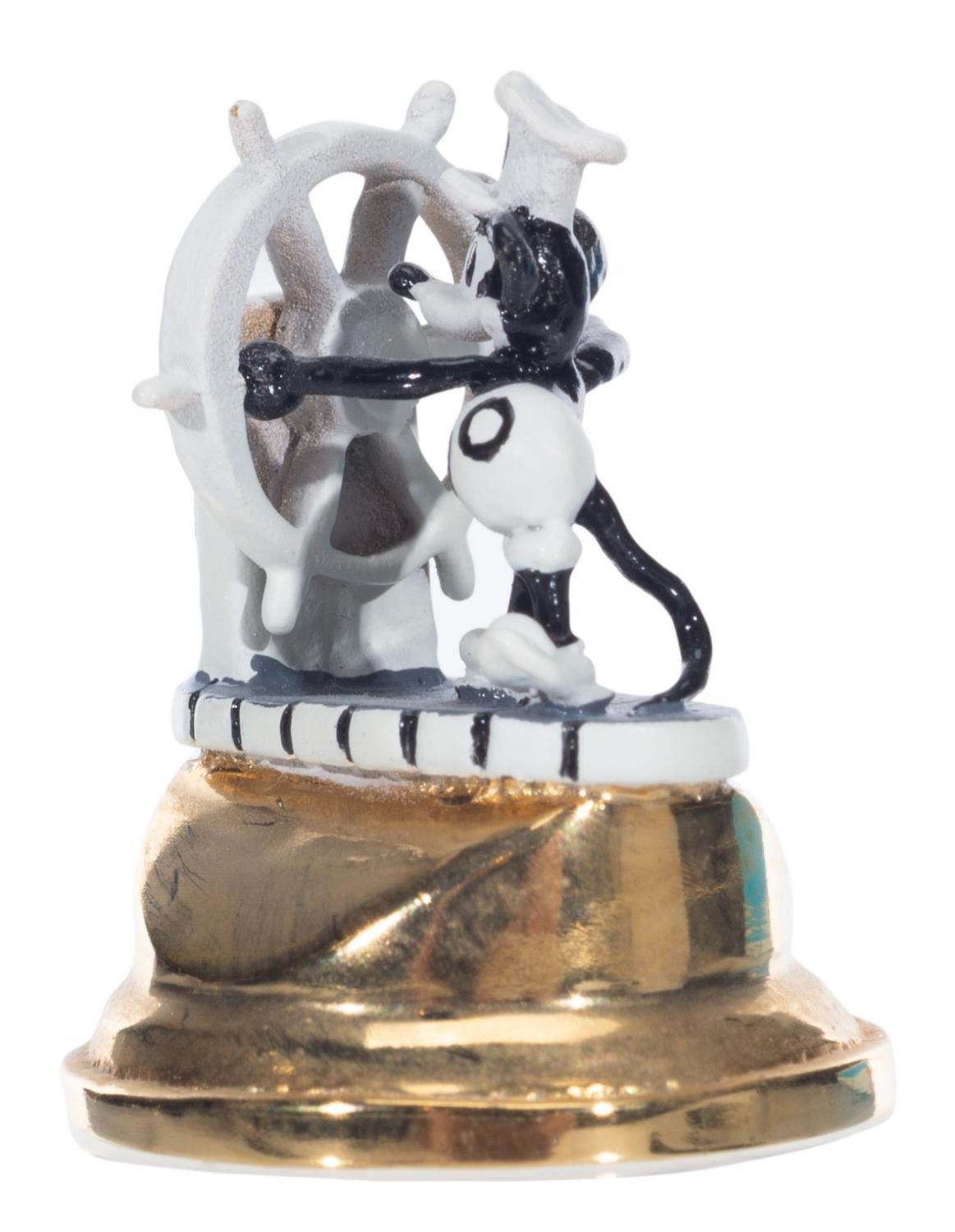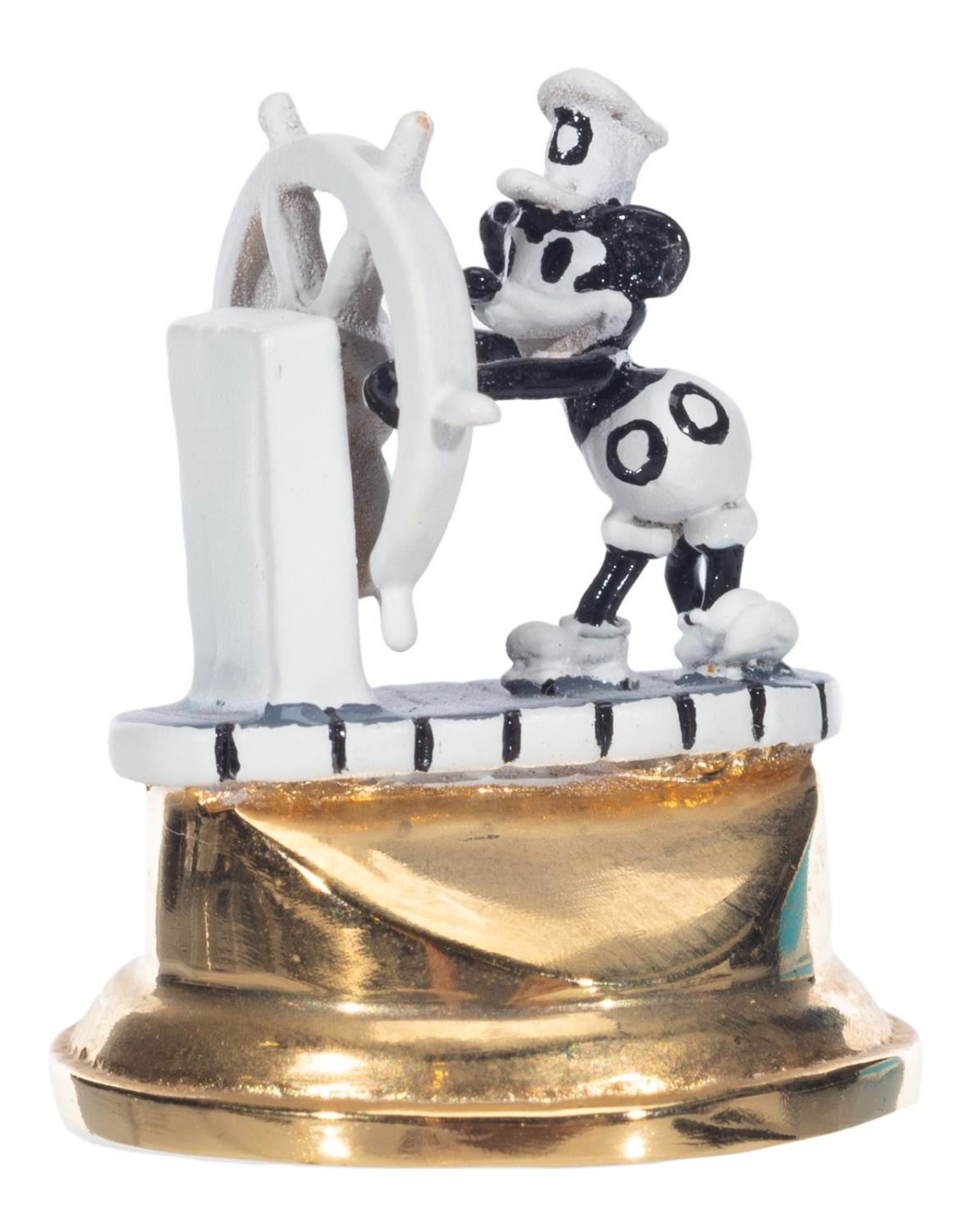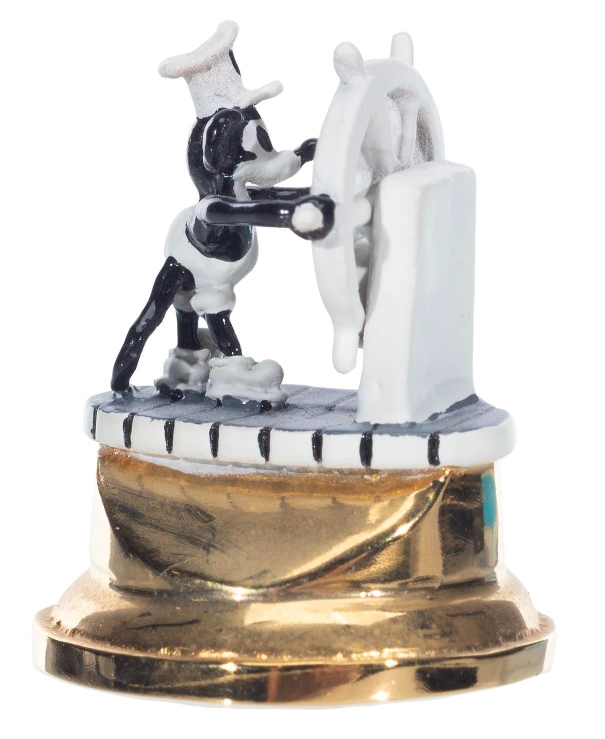 (C. Julian, 1988) A miniature bronze figurine of Mickey Mouse as he appeared in "Steamboat Willie," by C. Julian. Measuring 0.75" x 0.75" x 0.75" tall, the figure is in very good condition.
