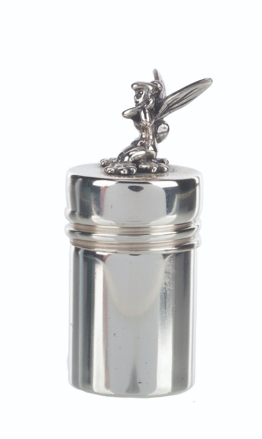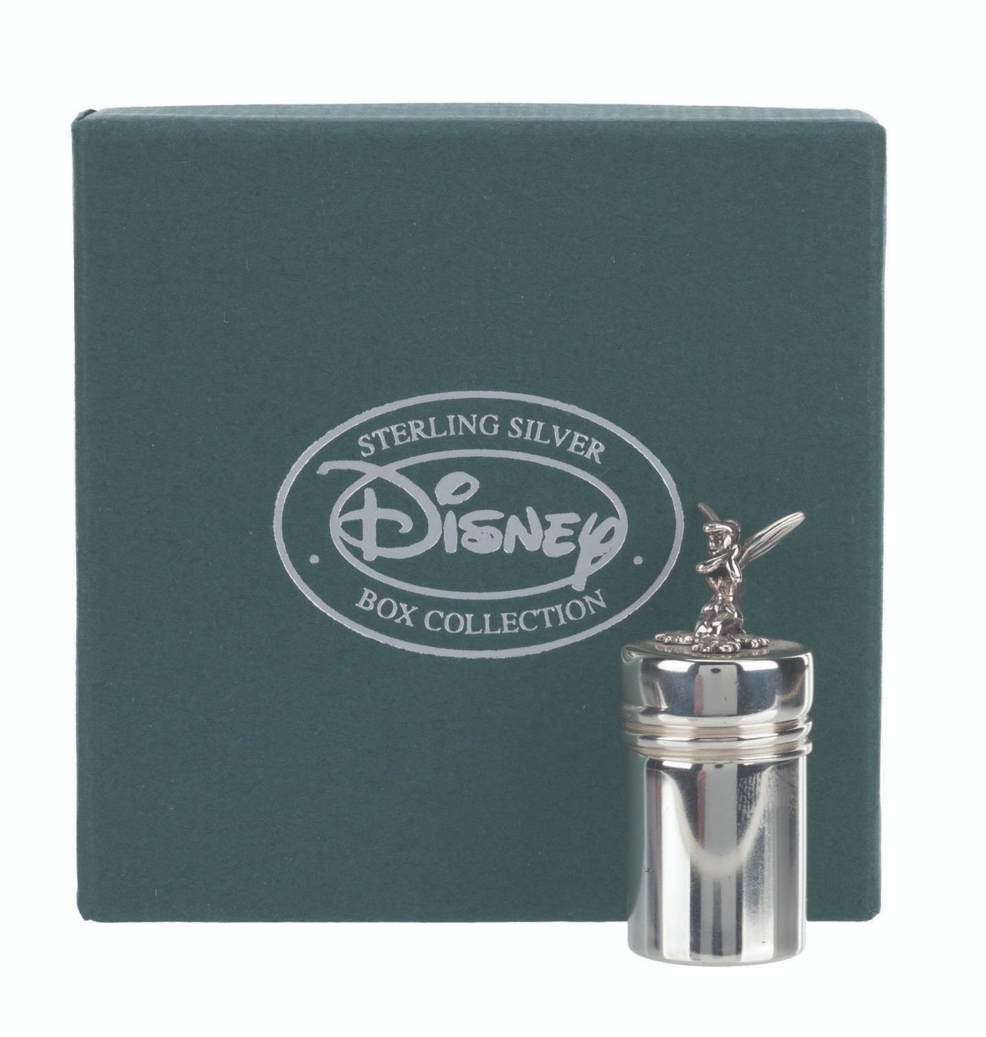 (Disney, 1990s) A keepsake sterling silver box with a tiny figure of Tinker Bell on the lid. The piece was available only through the Disney Catalog. Measuring only 1.5” tall, the piece is in fine condition.