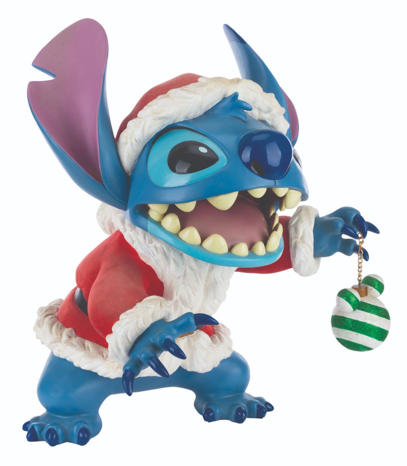 (Disneyland, 2005) A rare “Lilo & Stitch” Christmas big fig featuring Stitch titled “Mele Kalikimaka,” designed by Disney artist Costa Alavezos. This figure usually has a detached second piece, a snow base featuring Lilo’s doll Scrump in a pile of presents, but that piece is not included. Measuring 15” x 15” x 16.75” tall, the resin figure is in very good condition with light scratches, color fading on the jacket, stains, a 1.5” crack at the top of Stitch’s left ear, and typical wear from display.