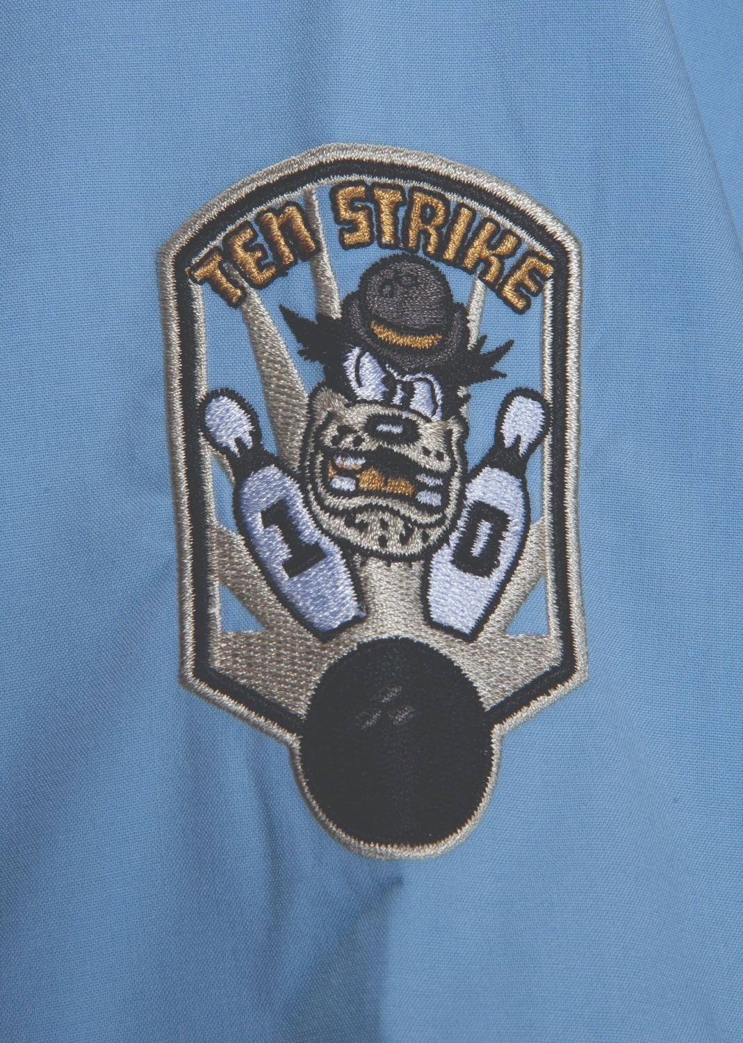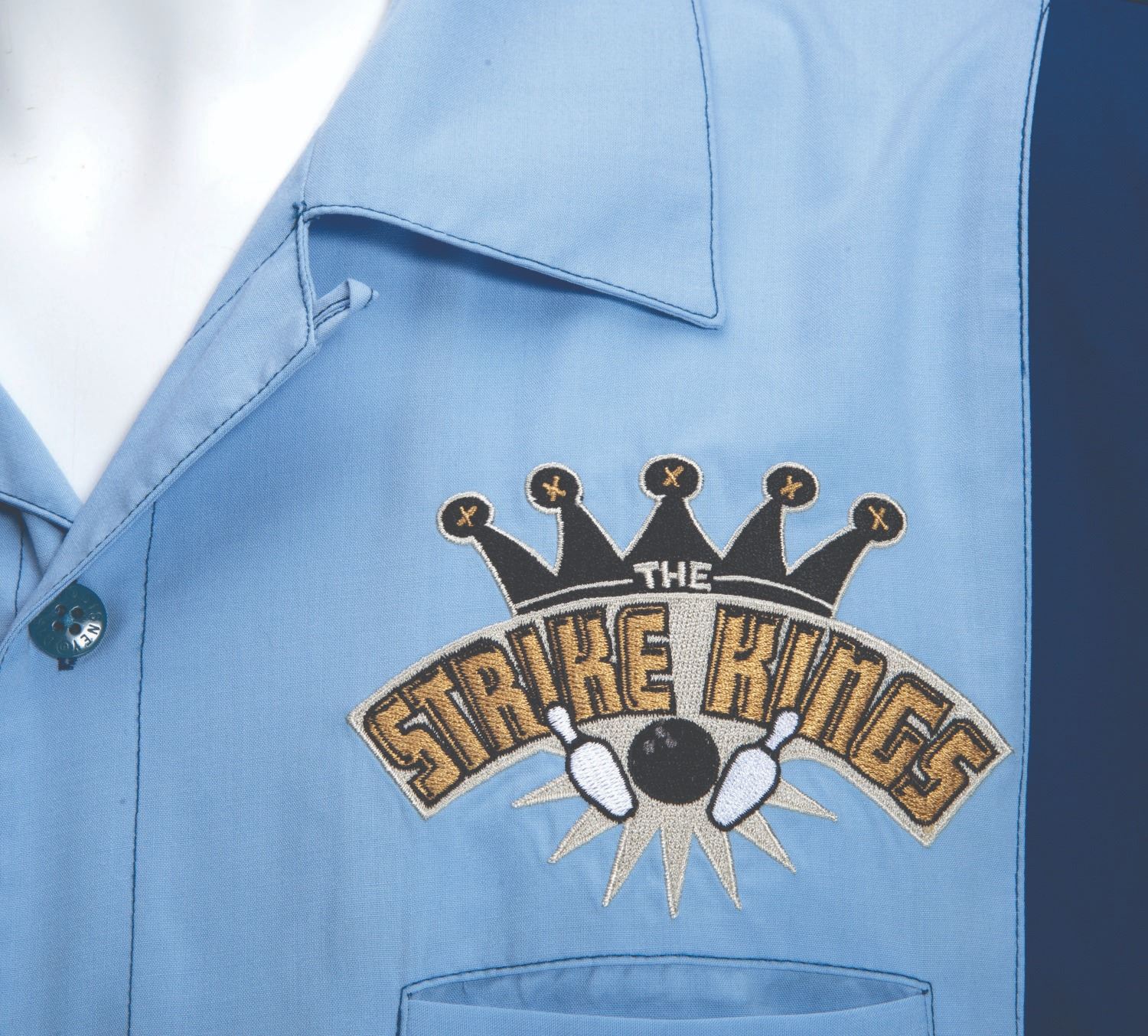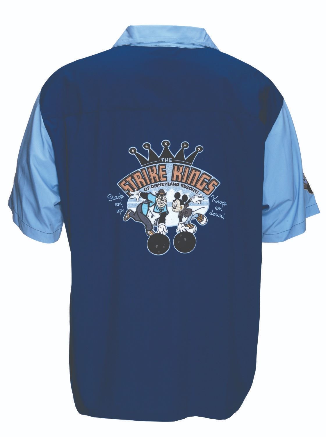(Disneyland Resort, 1990s) A retro-style Strike Kings of Disneyland Resort bowling shirt. Measuring a size extra-large, the unisex shirt is in good condition with a few spots of soiling and light wear.