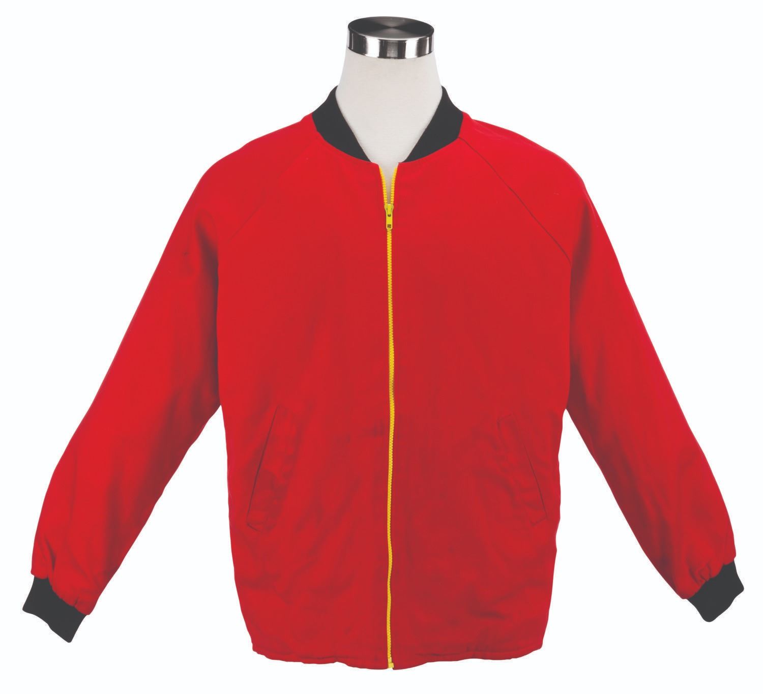(Disney-MGM Studios, 1989-1990s) A costume jacket worn by Cast Members working the Studio Catering Co. dining location at Disney-MGM Studios. Labeled a size L, the jacket is in good condition with stains and wear from Park use.