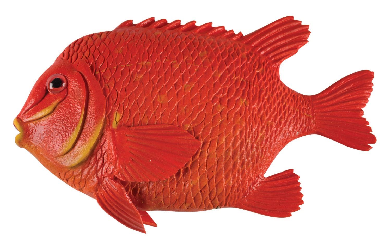 (Disneyland, 1960s-1998) An original orange static fish prop used in the Submarine Voyage Through Liquid Space attraction in Tomorrowland at Disneyland. This fish has two metal hooks embedded in its underside from its previous use within the depths of the Submarine Lagoon show scene. This piece was removed during a repair, rehabilitation, or upon the adventure's closure in 1998. This hand painted rubber latex prop measures approximately 10.5"x6.75" and is in very good condition with minor wear from Park-use, handling, and age.