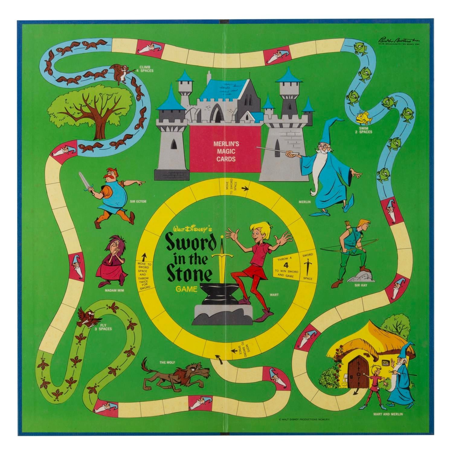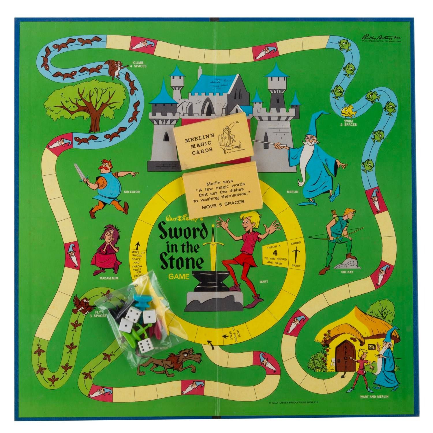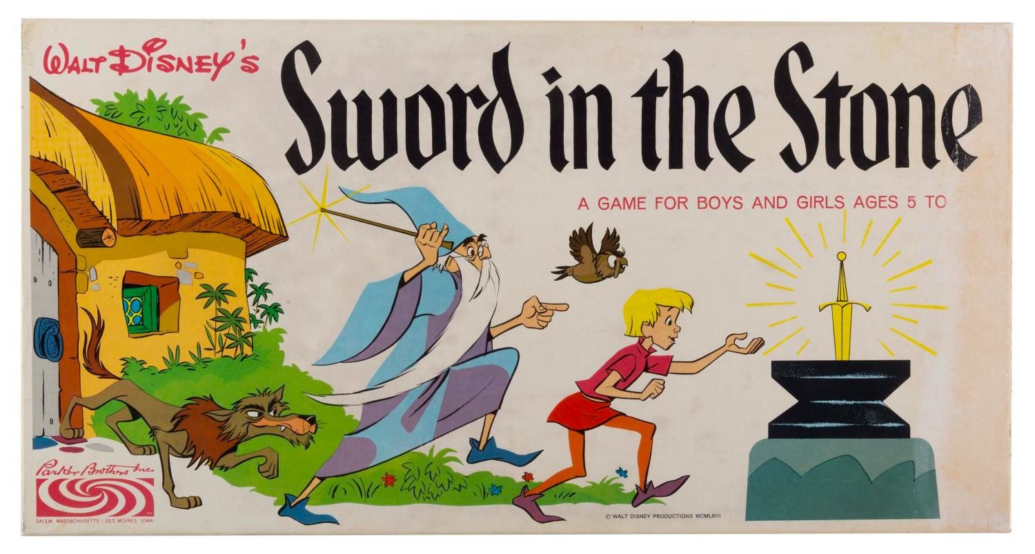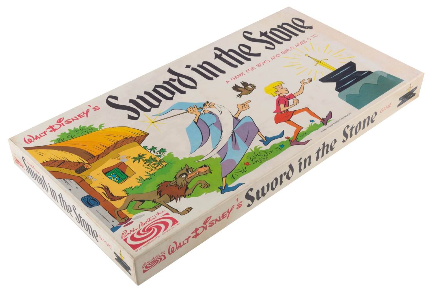 (Parker Brothers, 1963) An unopened “The Sword in the Stone” board game by Parker Brothers. Measuring 17.25” x 1.5” x 9”, the sealed game is presumed in fine condition, while the box displays in very good condition with light wear, scrapes, and discoloration from age.
