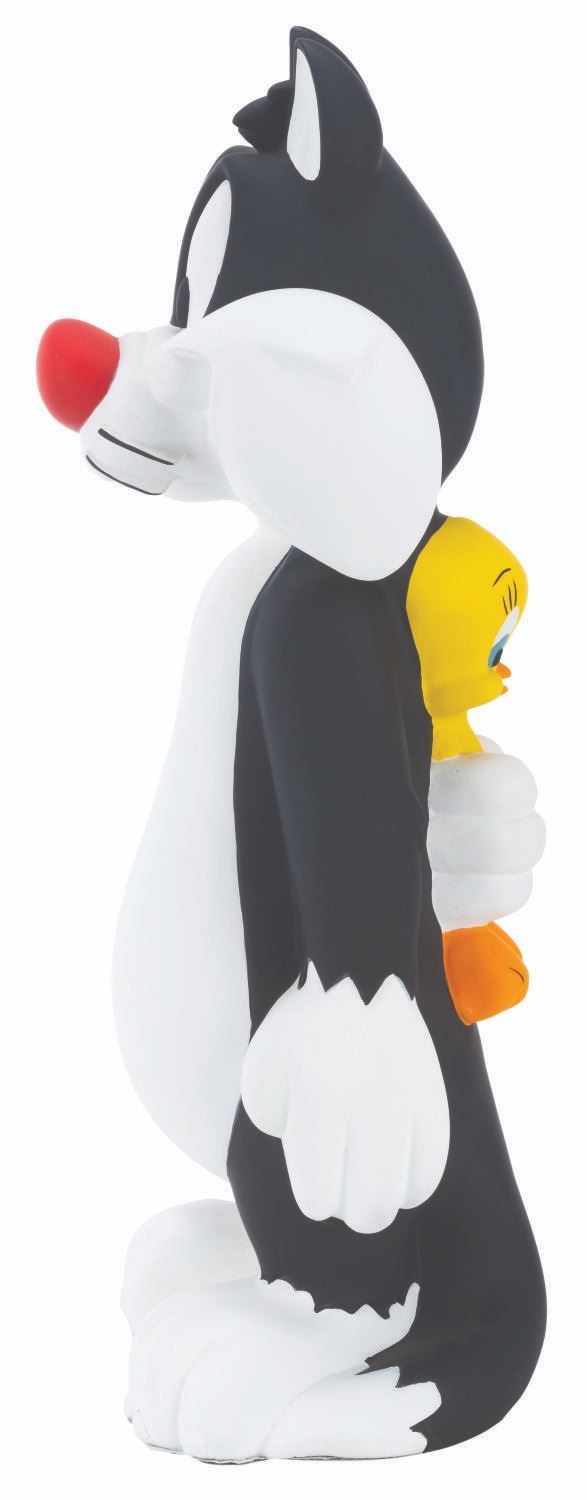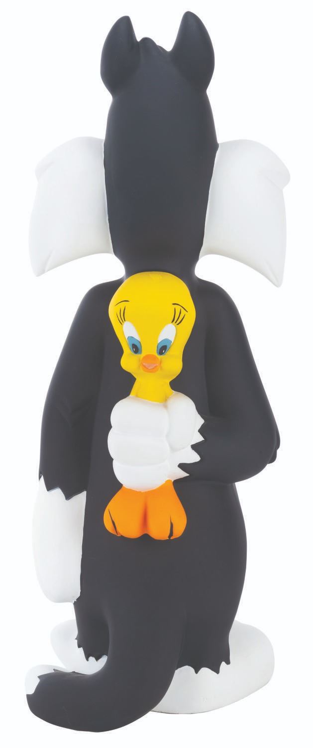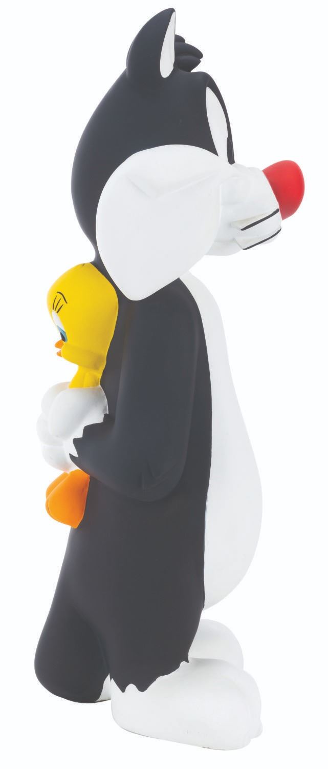 (WB Studio Store, 1996) A statue of Sylvester holding Tweety Bird behind his back, sold exclusively at the Warner Bros. Studio Store. Measuring 8.5" x 7.5" x 22.5" tall, the painted resin statue is in very good condition with light scratches, scuffs, and wear.