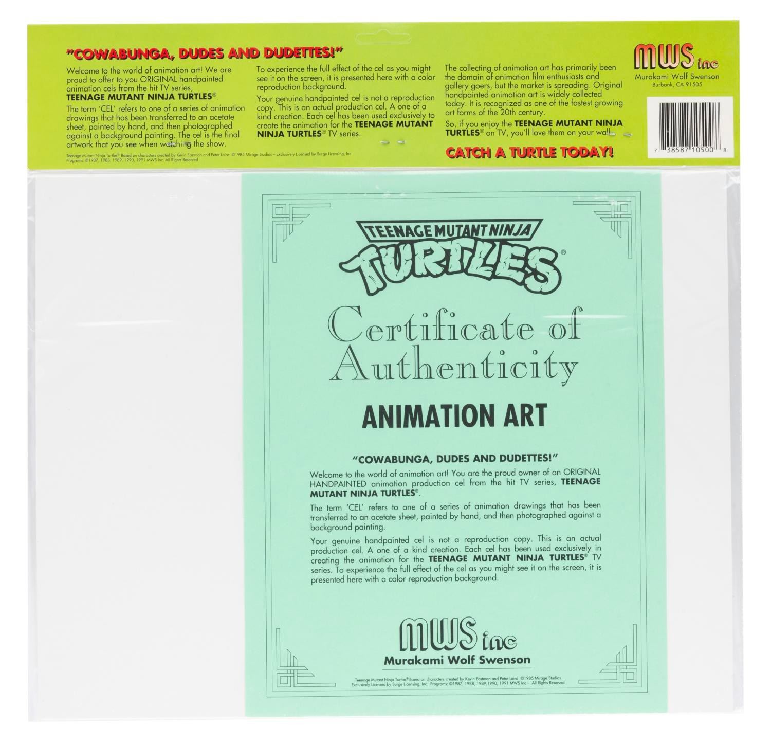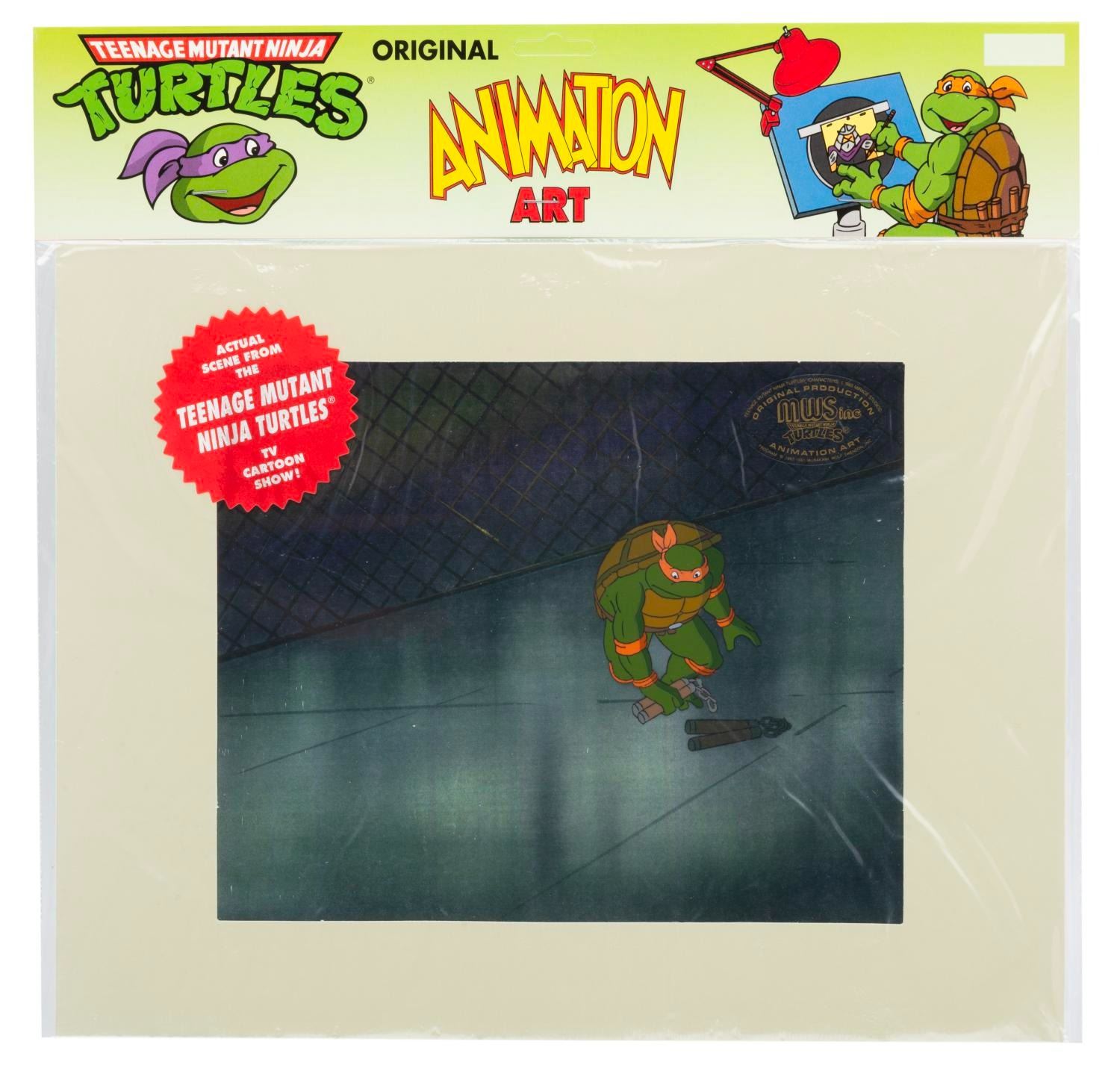 (Murakami-Wolf-Swenson, 1987-91) An original production cel of Michelangelo from "Teenage Mutant Ninja Turtles." Michelangelo has an image size of 2.5" x 2.75" in an 11" x 14" matte. The cel is sealed in its original bag and is in very good condition with light wear.