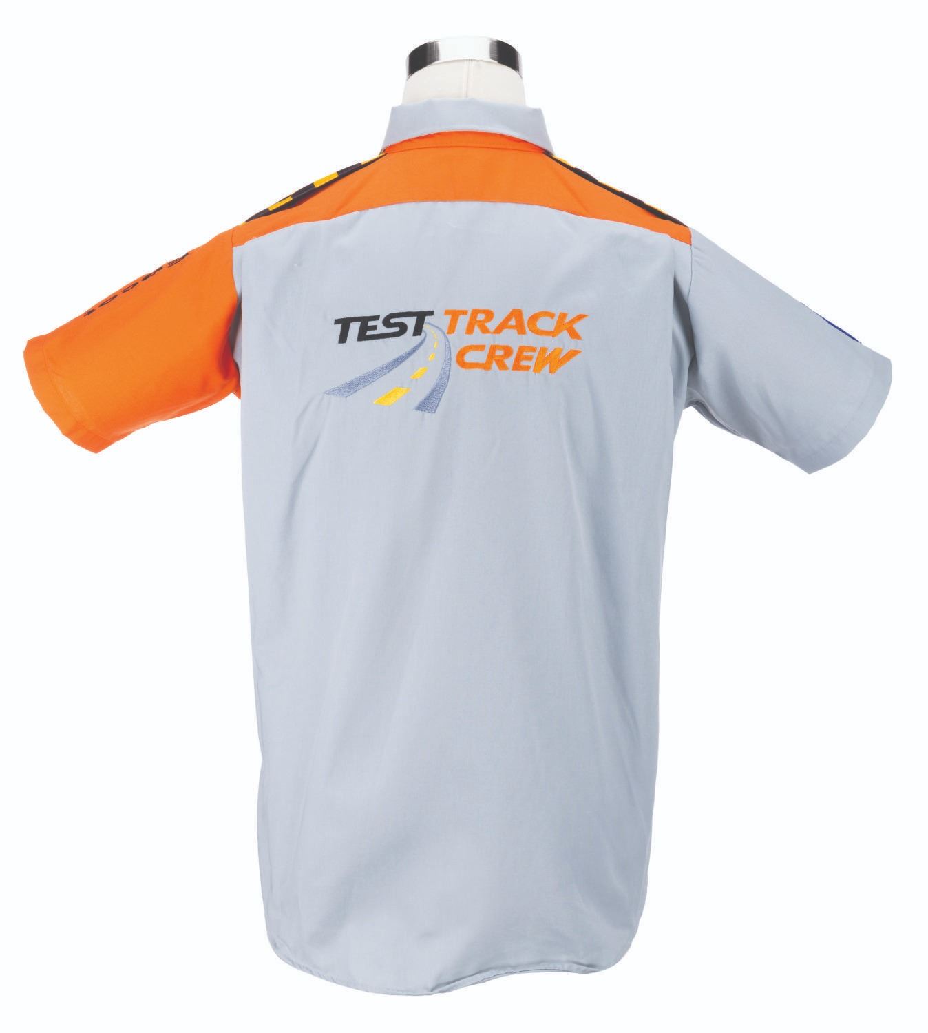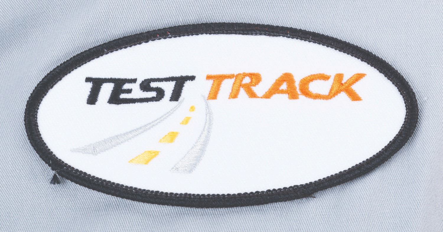 (Epcot, 1998-2012) A button-down costume shirt worn by Cast Members working Test Track in Future World, featuring the embroidered logo of the attraction's sponsor at the time, GM. Labeled a size M, the shirt is in very good condition, with light wear.