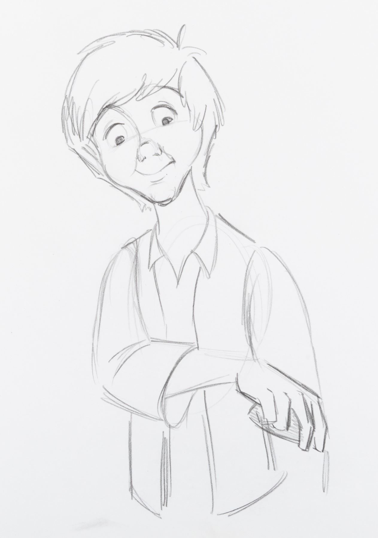 (Disney, 1985) An original production drawing in pencil of Taran from “The Black Caudron.” With an image size of 4.5” x 8.25” on 12.5” x 15.5” animation paper, the drawing is in very good production-used condition with light wear and a small smudge outside of the image.