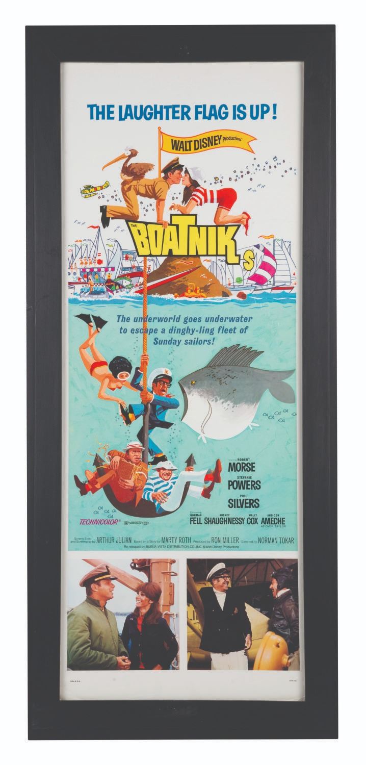 (Disney, 1977) An insert poster for the 1977 theatrical rerelease of “The Boatniks.” Measuring 14" x 36", the poster is in good condition with horizontal creases from folding and edge wear.