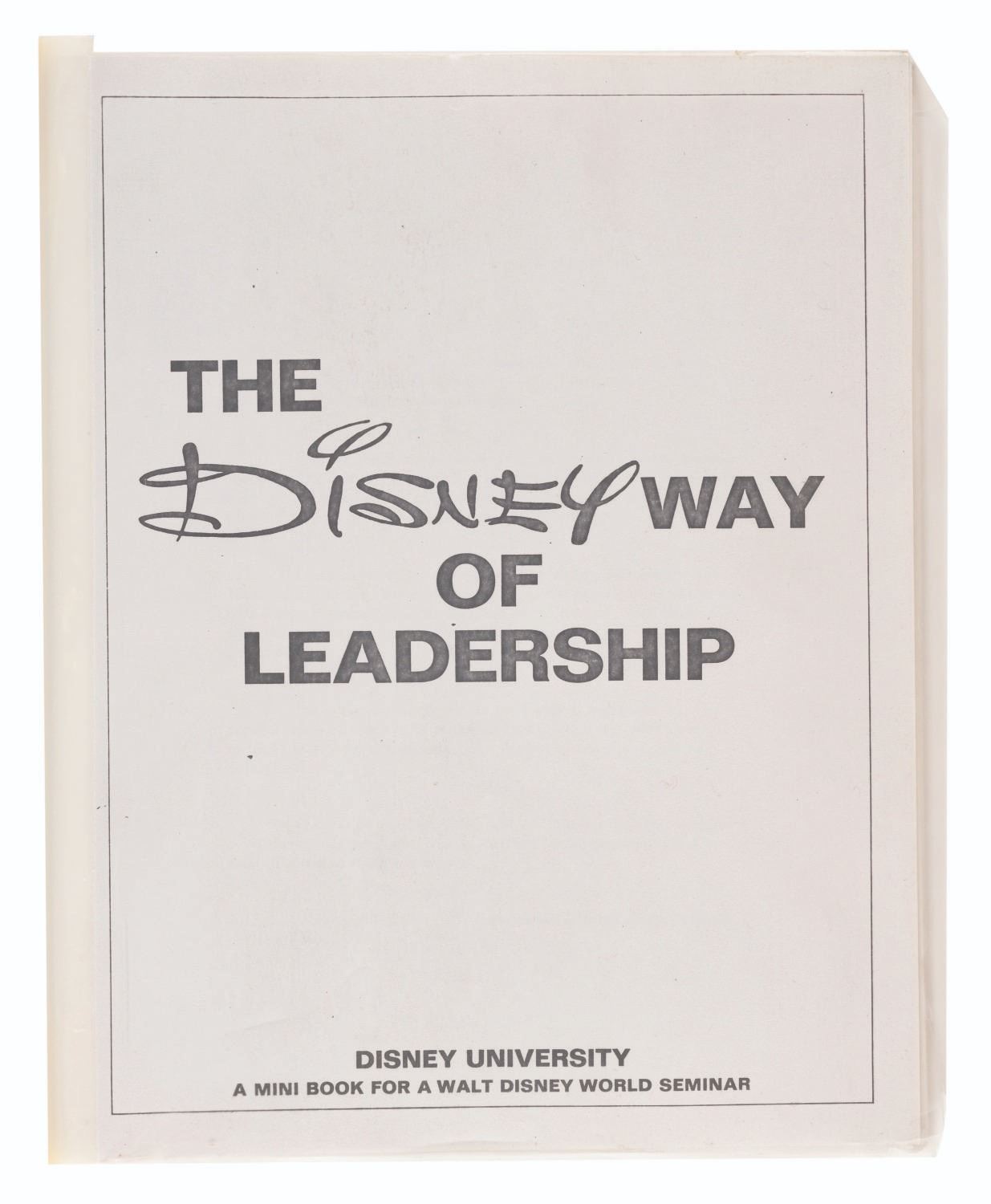 (Walt Disney World, 1974) An early Walt Disney World Seminar handbook for training prospective Cast Members. This 36-page booklet was produced by the Disney University and teaches the Disney philosophy of leadership and management. Measuring 9” x 11”, the handbook is in very good condition with light edge wear to the pages and wear and light creasing to the plastic protective cover.