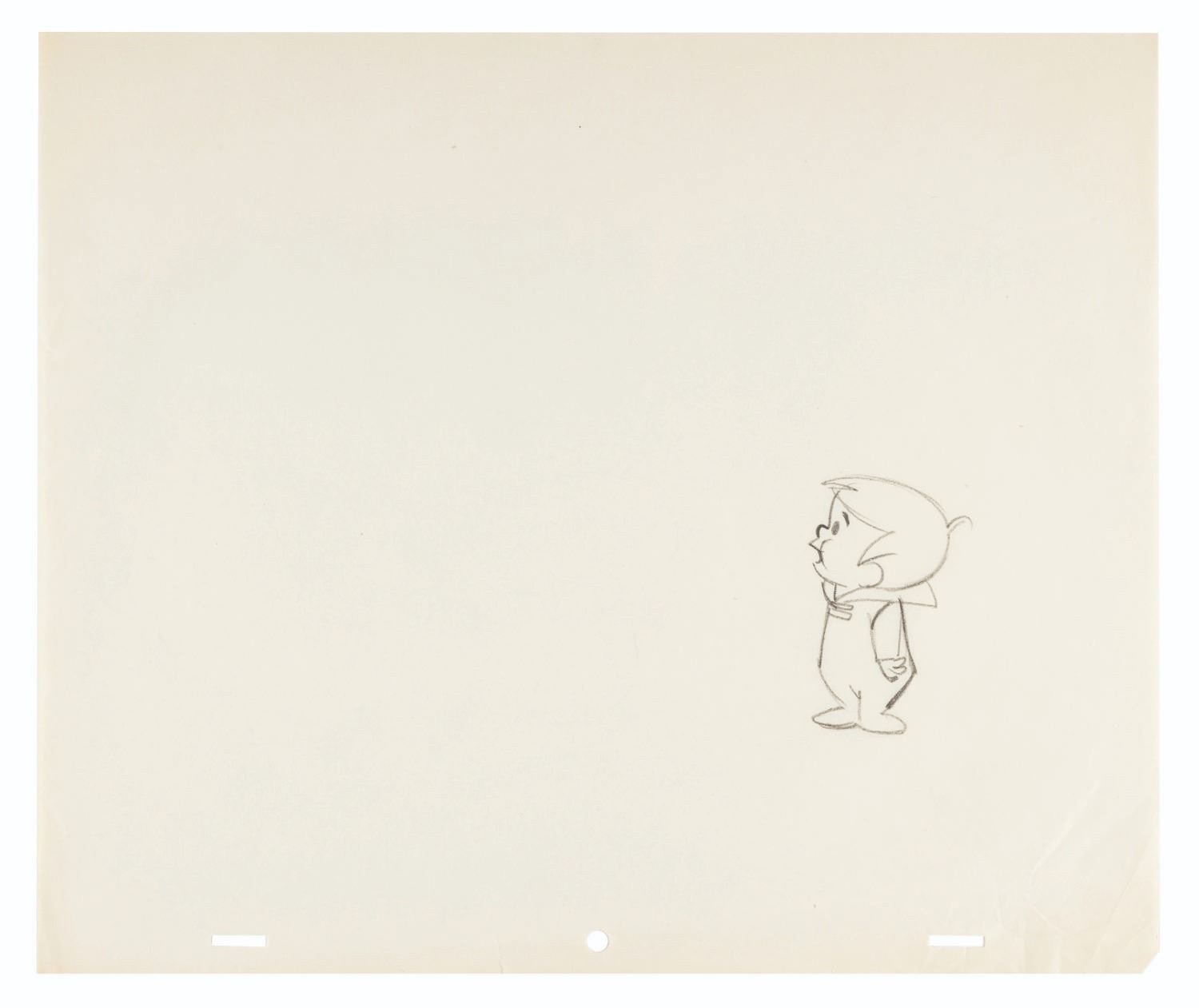 (Hanna- Barbera, 1962-63) A layout drawing of Elroy from “The Jetsons.” With a character image size of 1.5” x 3” on a 10.5” x 12.5” piece of drawing paper, the art is in very good condition with light creases and tears which do not affect the image area.