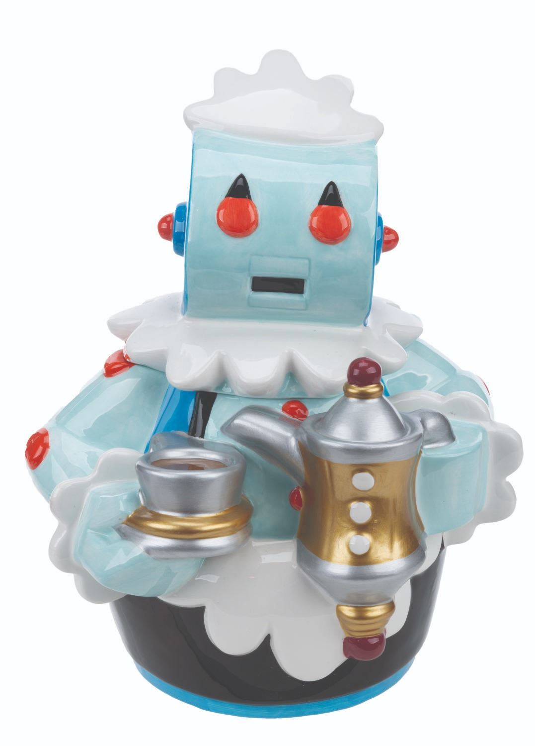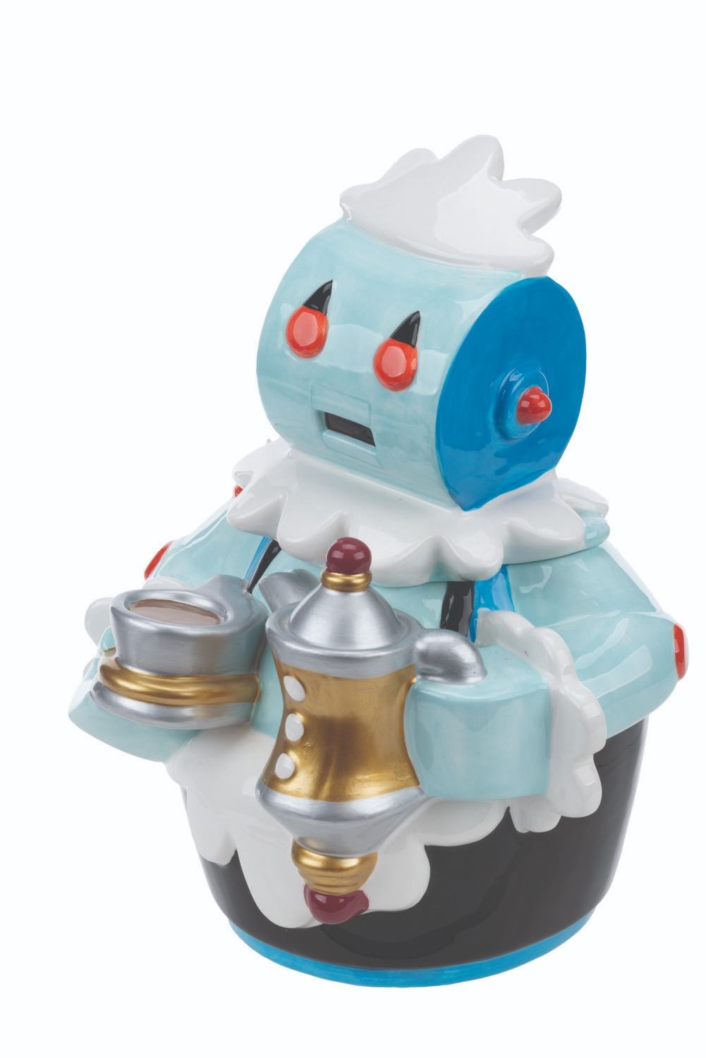 (WB Studio Store, 1999) A cookie jar of Rosie from "The Jetsons," originally sold at the Warner Bros. Studio Store. Measuring 13" tall and 6.5" in diameter, the cookie jar is in very good condition with light wear and crazing, notably 2.75" on the apron.
