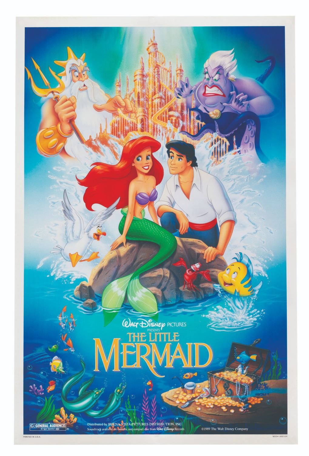 (Disney, 1989) An original theatrical one-sheet for "The Little Mermaid. " Measuring 27 " x 41 ", the rolled poster is in very good condition with light spotting along the bottom and on the back.