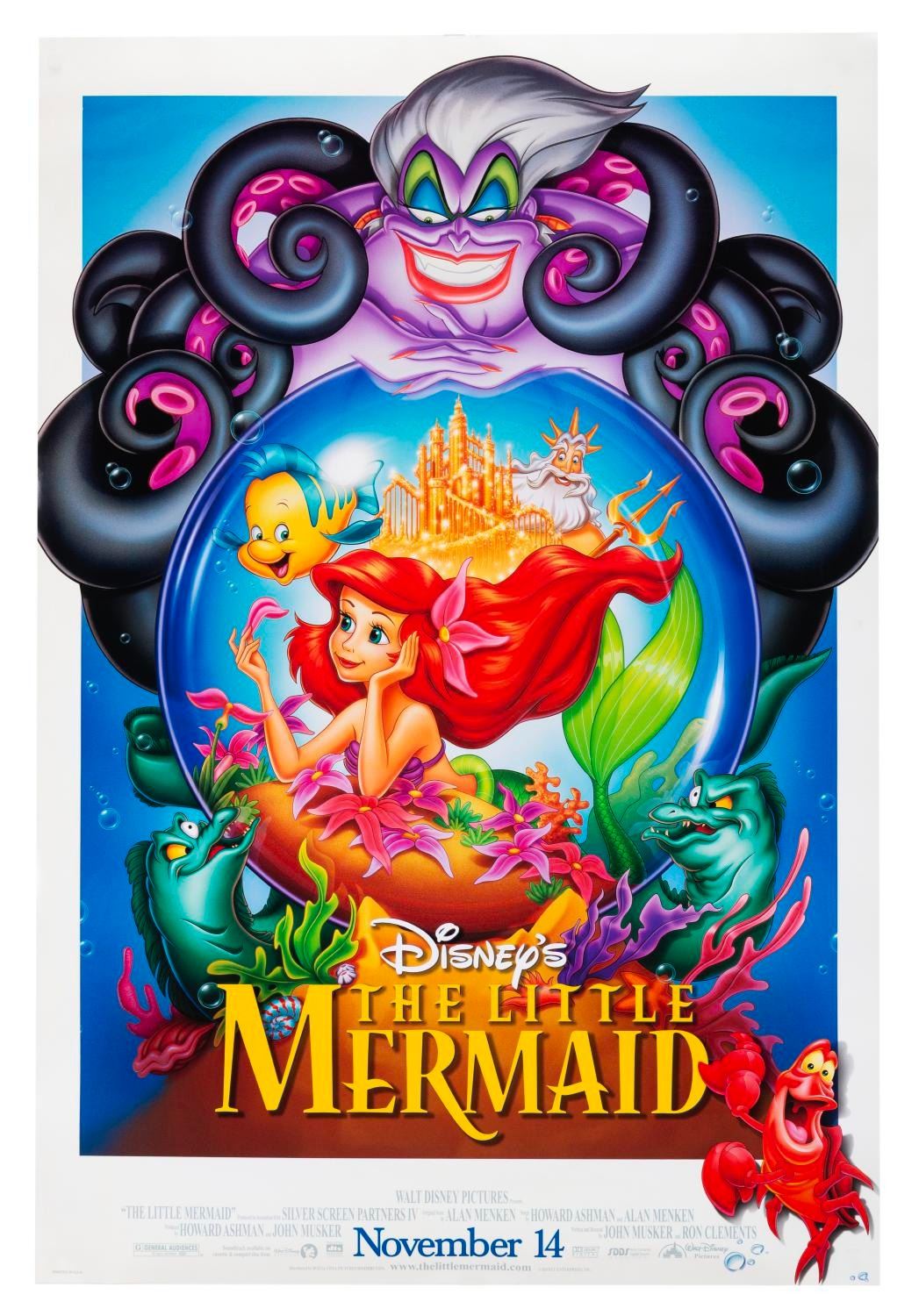 (Disney, 1997) A one-sheet for the 1997 theatrical re-release of "The Little Mermaid." Measuring 27" x 40", the poster is in very good condition with light handling wear.