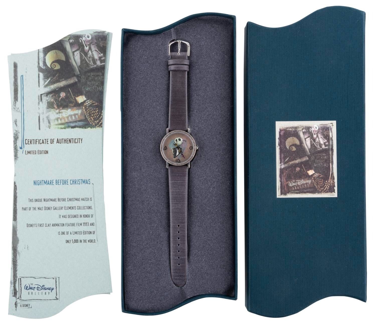 (Disney, 1993) A Disney Gallery "The Nightmare Before Christmas" watch, released in a limited edition of 5,000. The watch did not work when tested, likely requiring repair. Complete with its 11.5" x 1.75" x 4.25" tall original box, the watch is in fine condition.