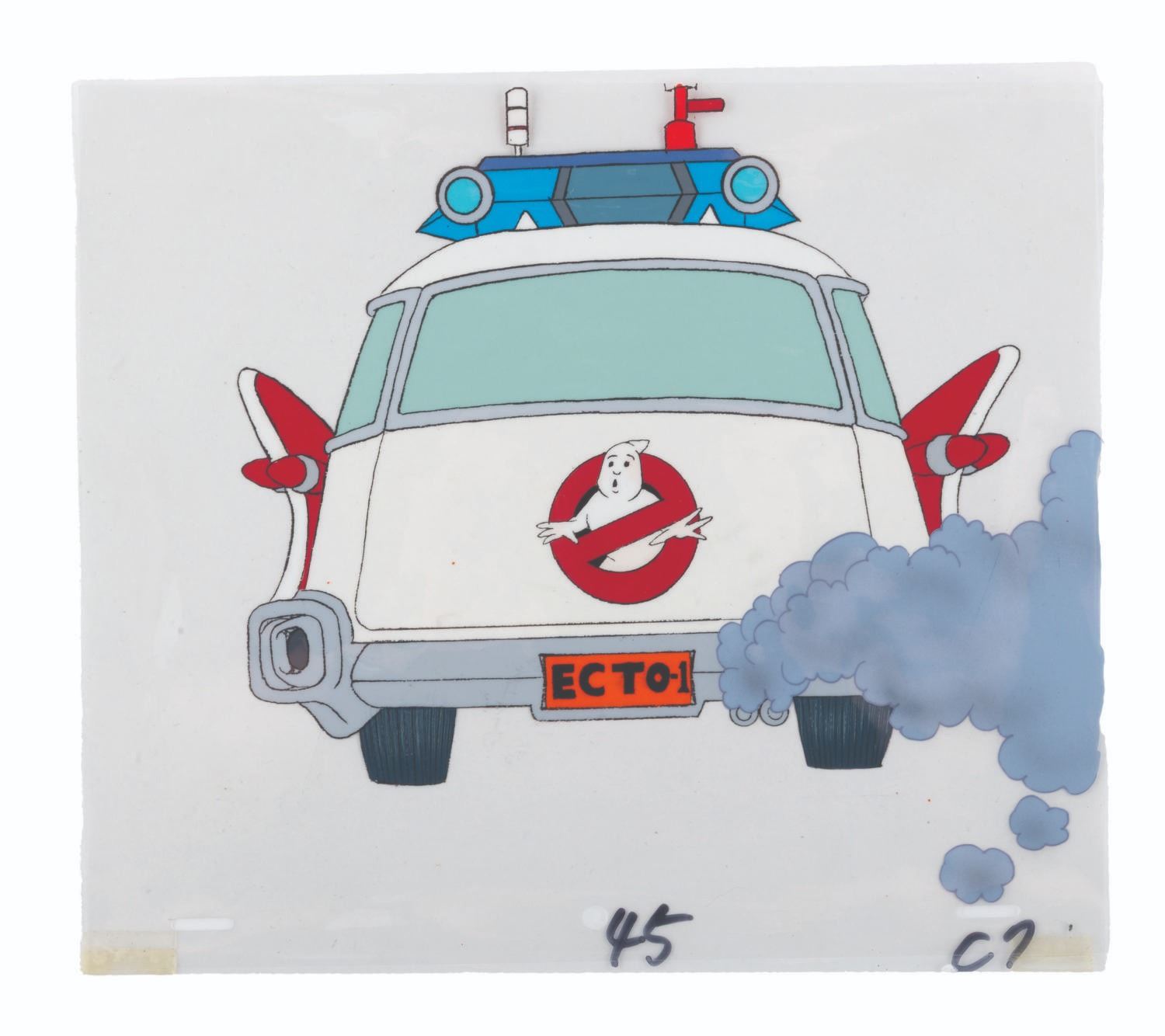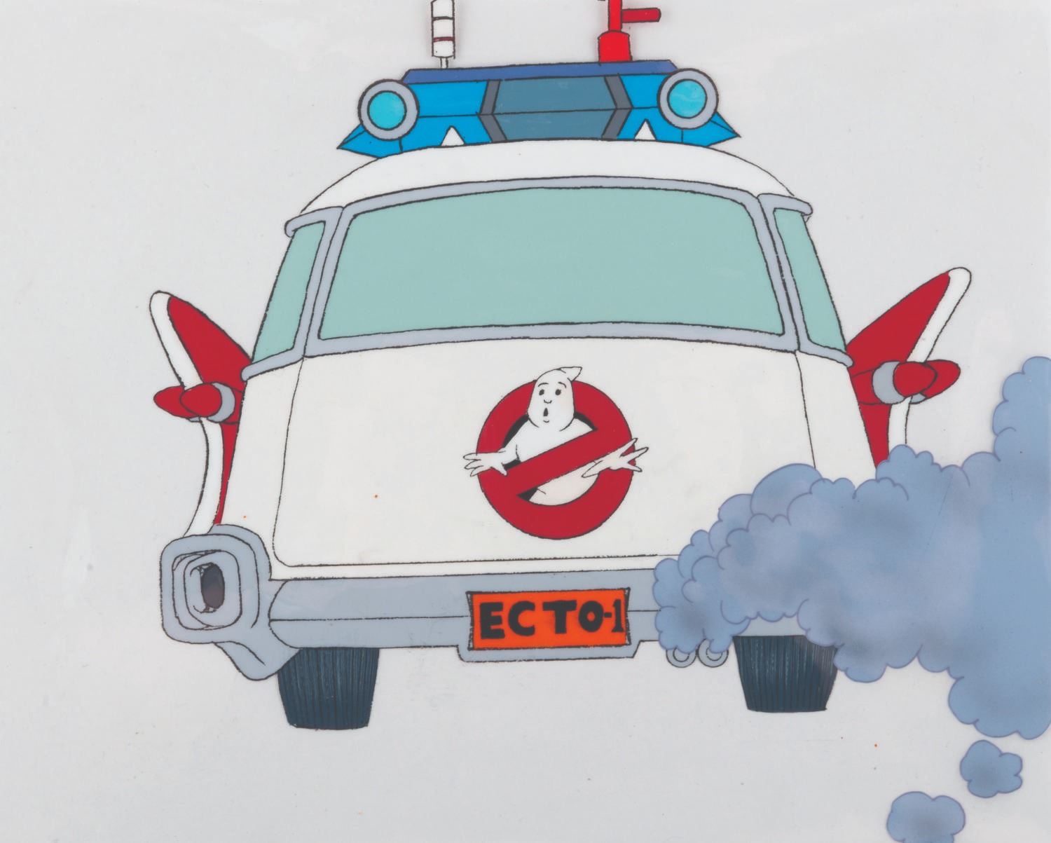 (DiC, 1986-91) An original production cel of the Ecto-1 from "The Real Ghostbusters. " With an image size of 9 " x 8.5 ", the 9 " x 10.25 " cel is in very good condition with typical light wear from original production use.
