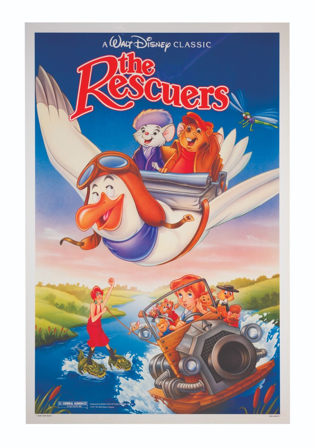 (Disney, 1989) A one-sheet poster for the 1989 theatrical re-release of “The Rescuers.” Measuring 27” x 41”, the poster is in very good condition with light creases and edge wear.