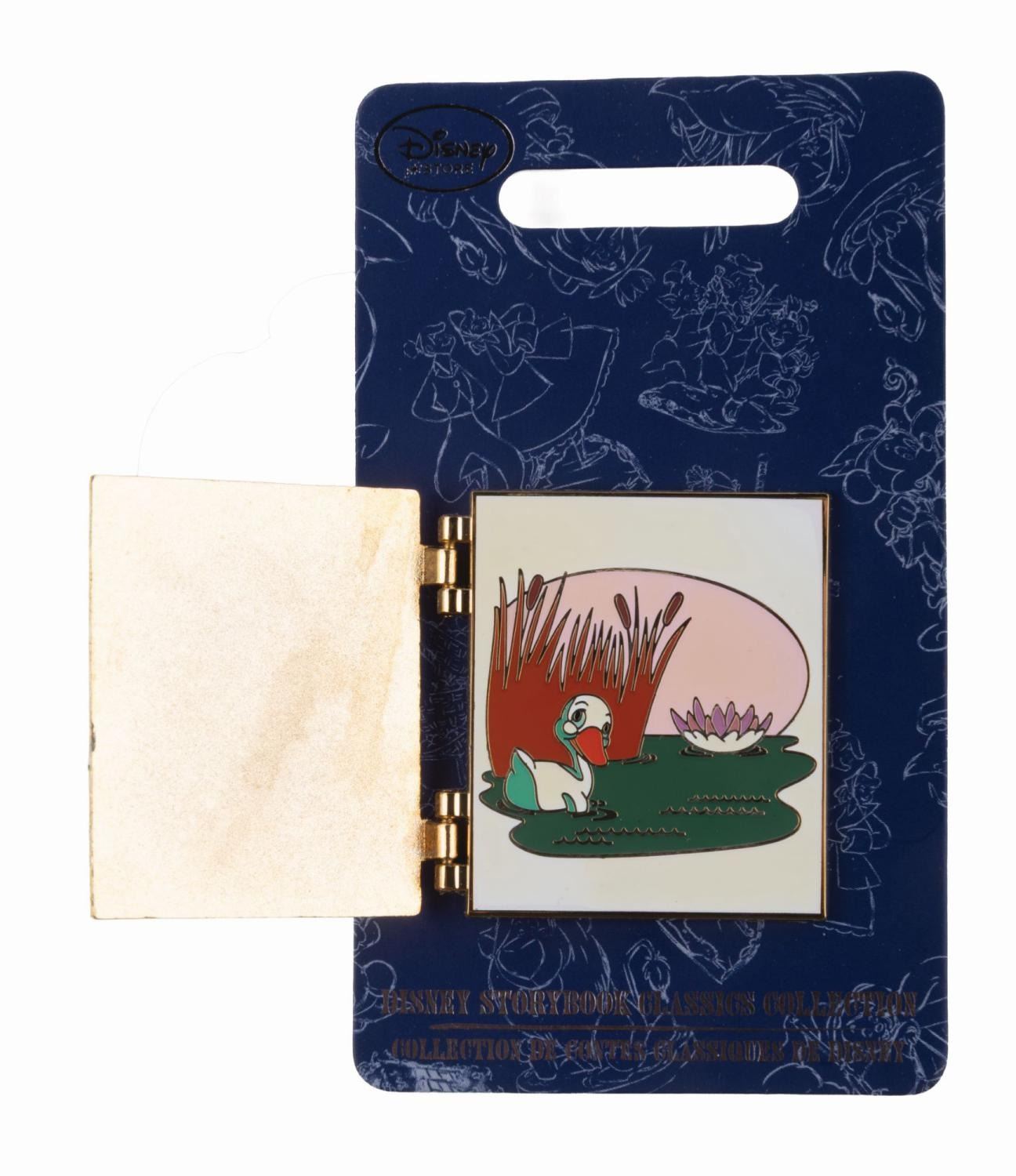 (Disney, 2017) A "The Ugly Duckling" hinged book pin, released in the Disney Storybook Pin Collection in February 2017. Measuring 1.5" x 1.75", the LE 1100 pin is in fine condition on the original card.