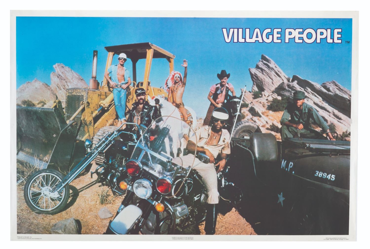 (CasaBlanca Records, 1978) A poster featuring the Disco sensation The Village People. Measuring 22.5 " x 33.75 ", the poster is in very good condition with very light handling wear.