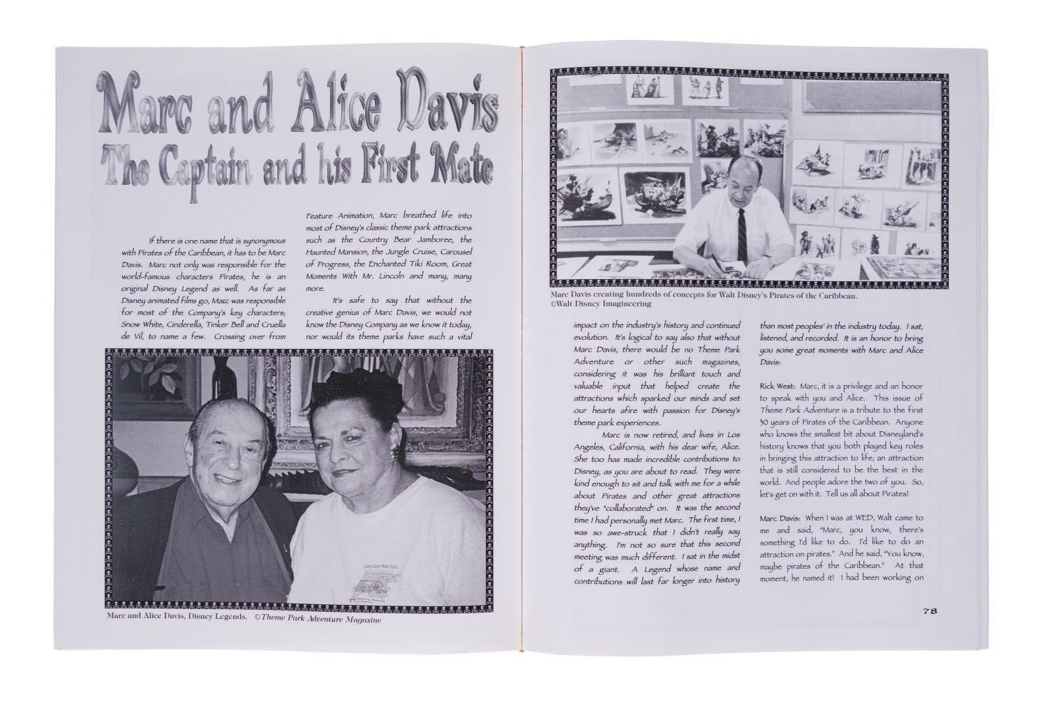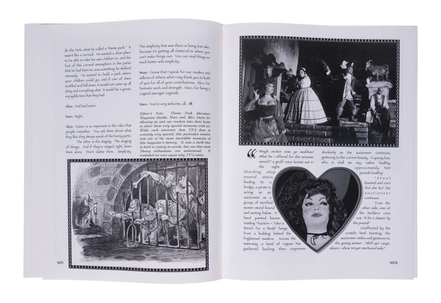 (Disney, 1999) An issue of Theme Park Adventure Magazine focusing on Walt Disney's Pirates of the Caribbean. The 169-page publication contains interviews with the Disney Legends and Walt Disney Imagineers who brought the rollicking adventure to life. Measuring approximately 8.5"x11", the book is in fine condition.