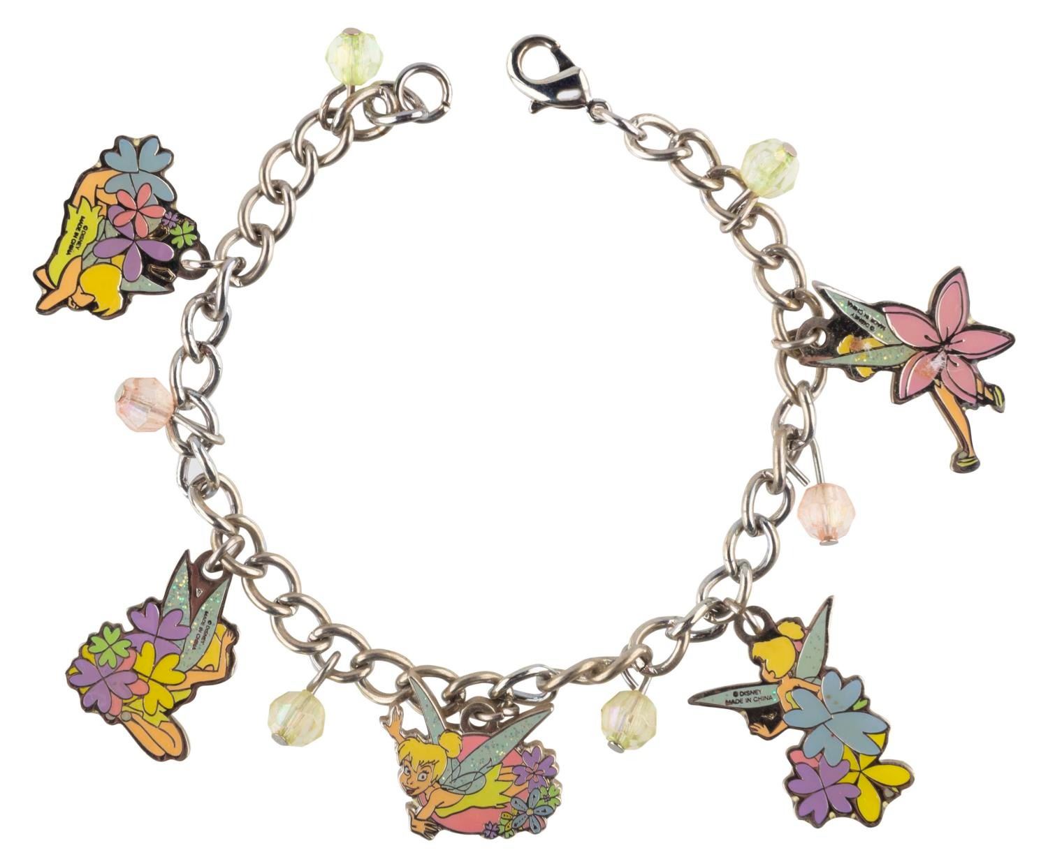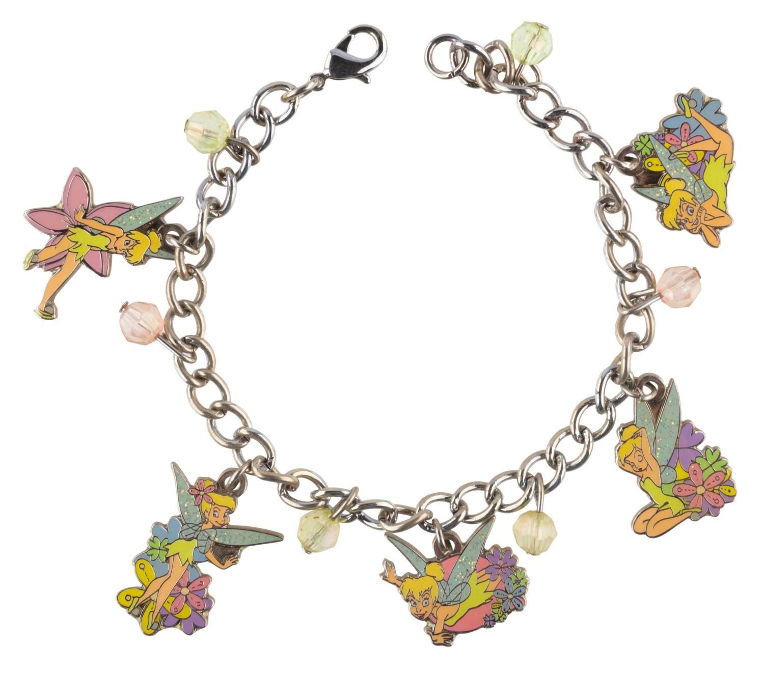 (Disney, 1990s-2000s) A charm bracelet with five Tinker Bell and six plastic bead charms. Measuring 7” in length with 0.25” to 0.75” charms, the bracelet is in fine condition.