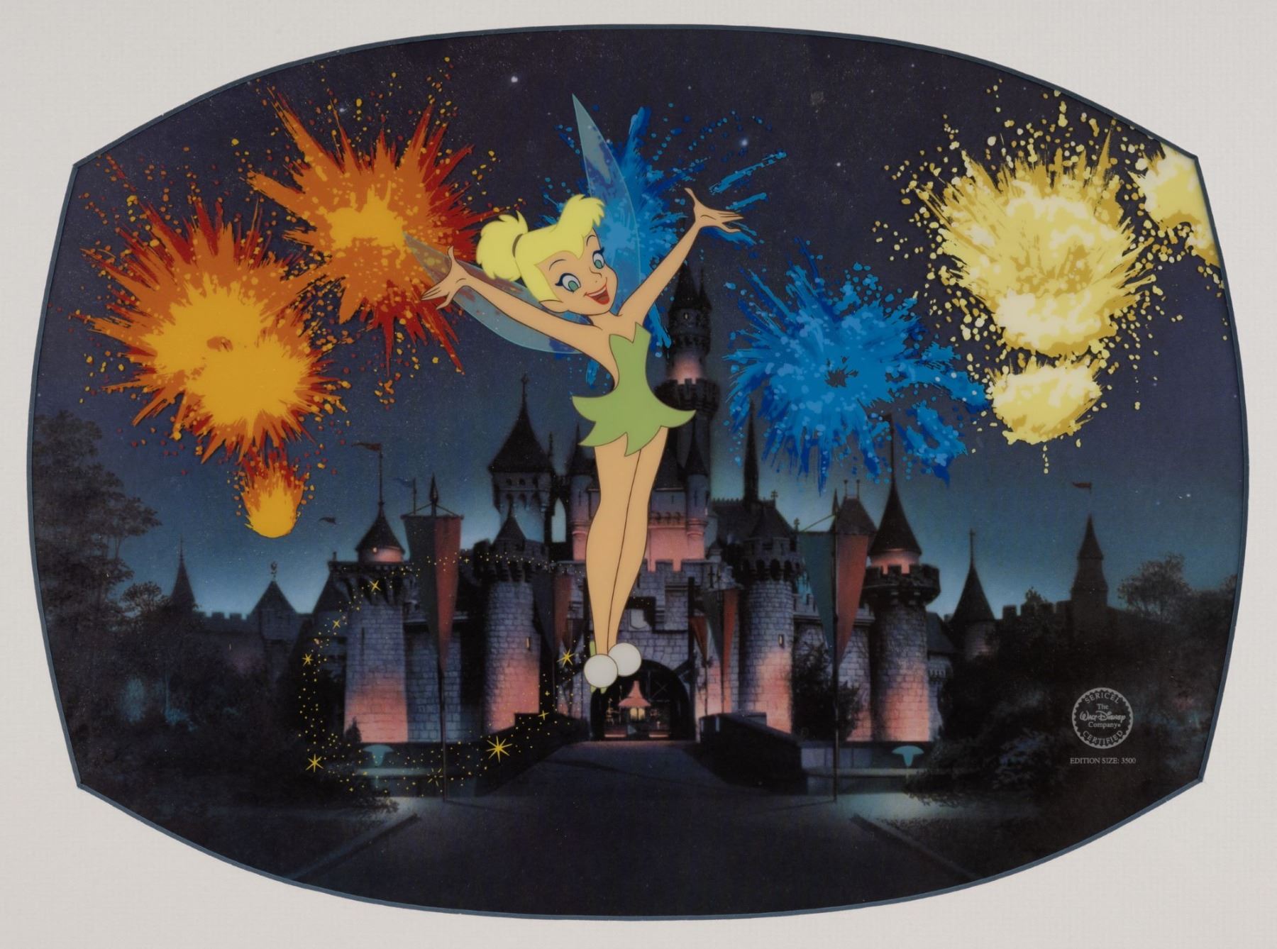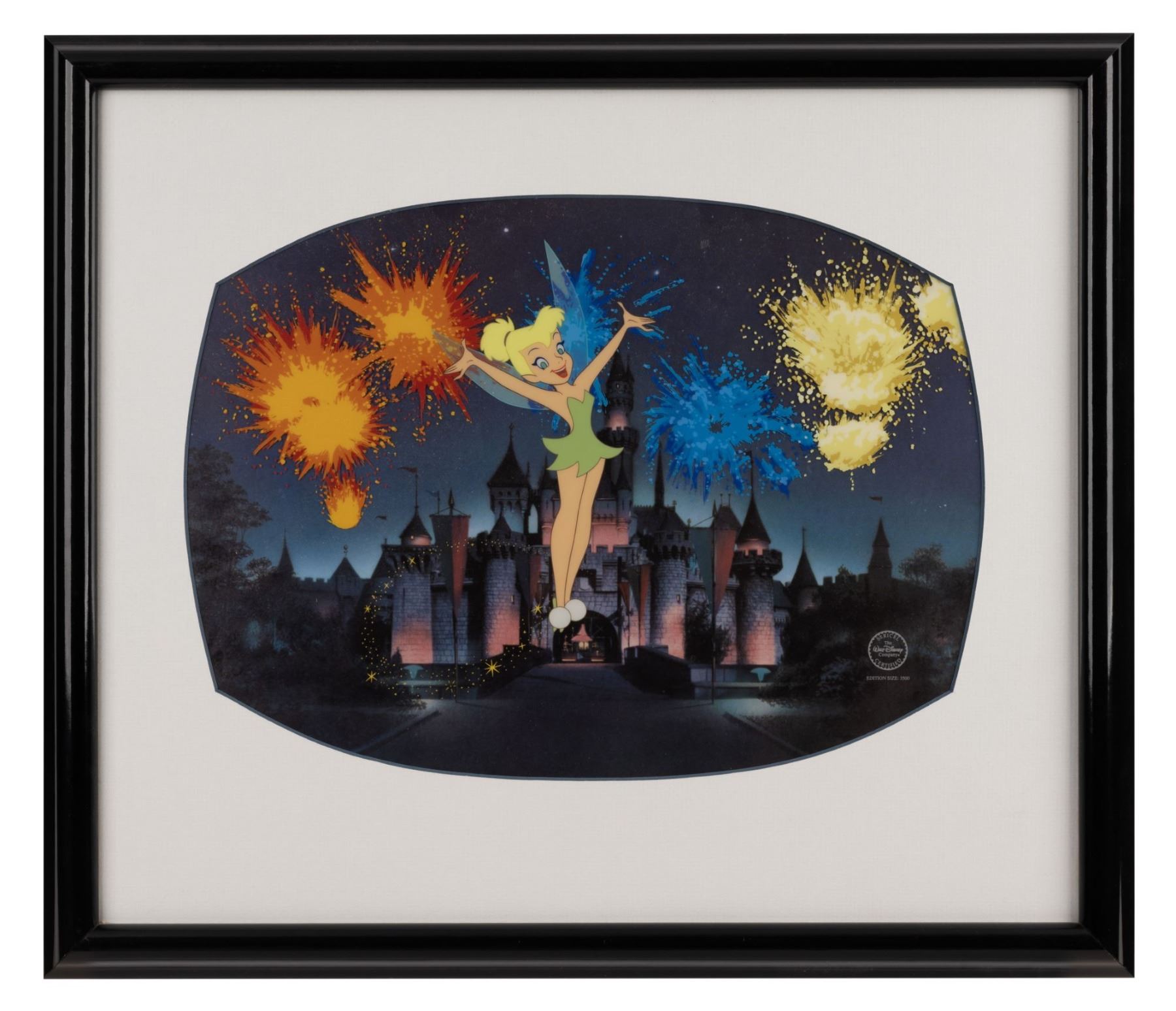 (Disney, 1997) A sericel featuring Tinker Bell titled “It’s a Wonderful World.” The artwork was released in a limited edition of 3500 pieces. With an image size of 9” x 13.5” in a 10” x 13.75” TV-shaped matte opening, the sericel is in fine condition.