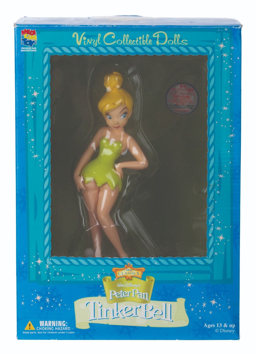 (Medicom, 2000s) A Vinyl Collectible Doll of Tinker Bell from "Peter Pan" manufactured by Medicom. Standing 7.75" tall, the figure is in fine condition, with the original box.