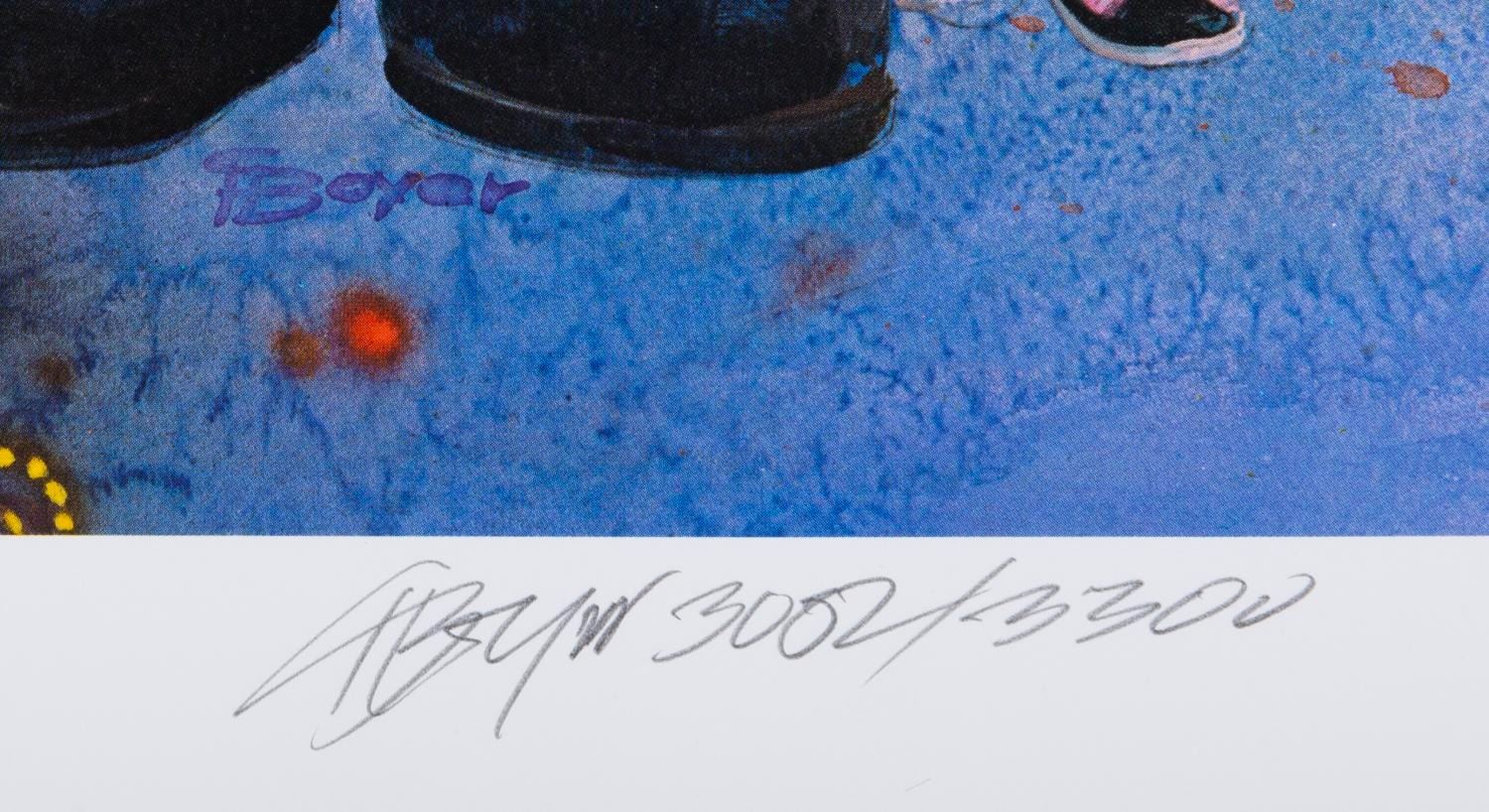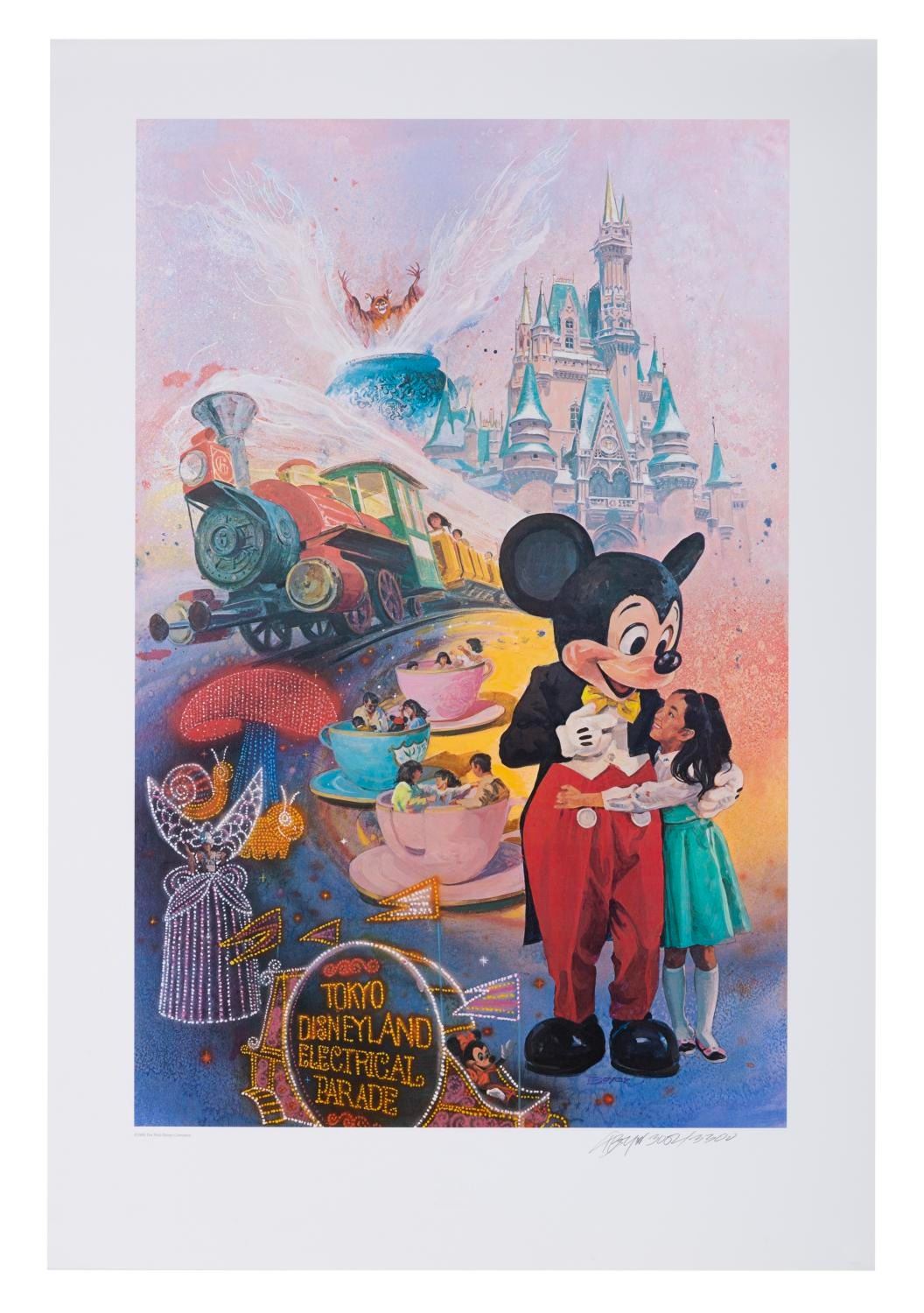 (Tokyo Disneyland, 1988) A rare print by Charles Boyer celebrating the 5th anniversary of Tokyo Disneyland. Boyer signed the lithograph and numbered it as "3002/3300" in pencil in the bottom right. Measuring 20" x 30", the print is in very good condition with very light edge wear and the original Certificate of Authenticity.