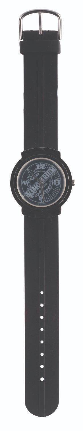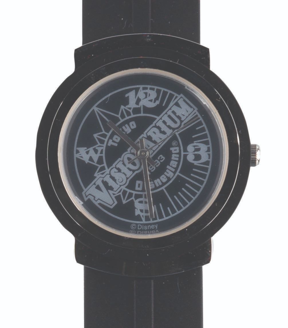 (Tokyo Disneyland, 1993) A Cast Member-exclusive wristwatch celebrating the 1993 opening of Visionarium, the Circle Vision 360 show about famous inventors that played at Tokyo Disneyland from 1993 to 2001. The watch is being sold as untested and may require batteries and service to function. Measuring 9" long with a 1.5" face, the watch is in fine condition in its original box.