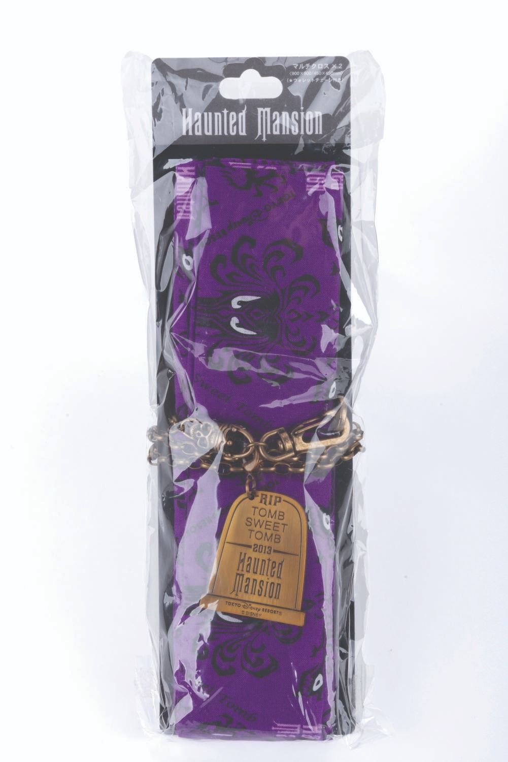 (Tokyo Disney) A Tokyo Disney Haunted Mansion Pocket Square & Chain. The pocket square features a Haunted Mansion wallpaper pattern while the chain is accented by a skull and Haunted Mansion “Tomb Sweet Tomb” fob. The pieces are in fine condition on their original card.