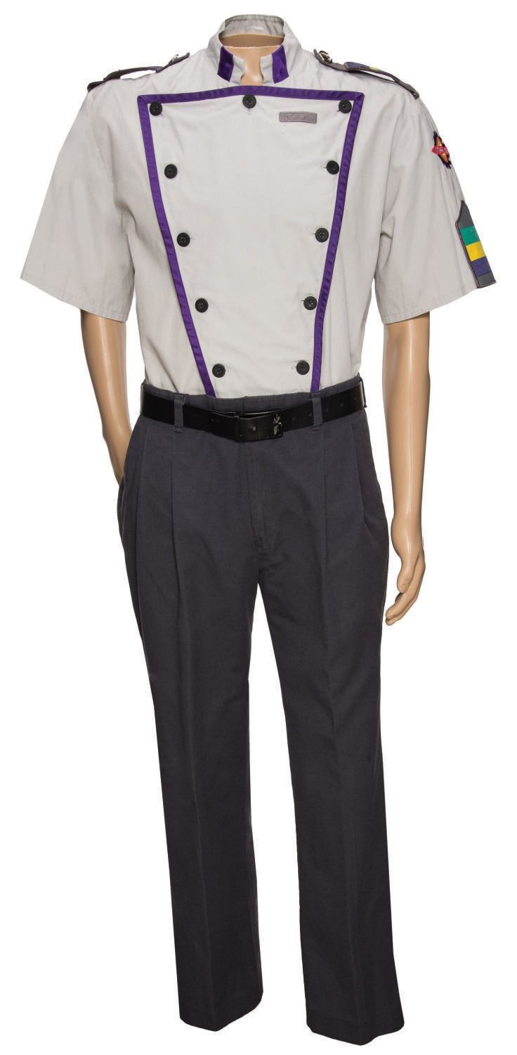 (Walt Disney World, 2000s) A vintage 2000s shirt once worn by Cast Members of Tomorrowland in The Magic Kingdom at Walt Disney World. The piece features the color palette and progressive logo of Tomorrowland. The shirt measures a size large, while the pants are of unknown size, and the belt is one size fits all. Each Piece is in very good condition with wear throughout from Park use, handling, and age.