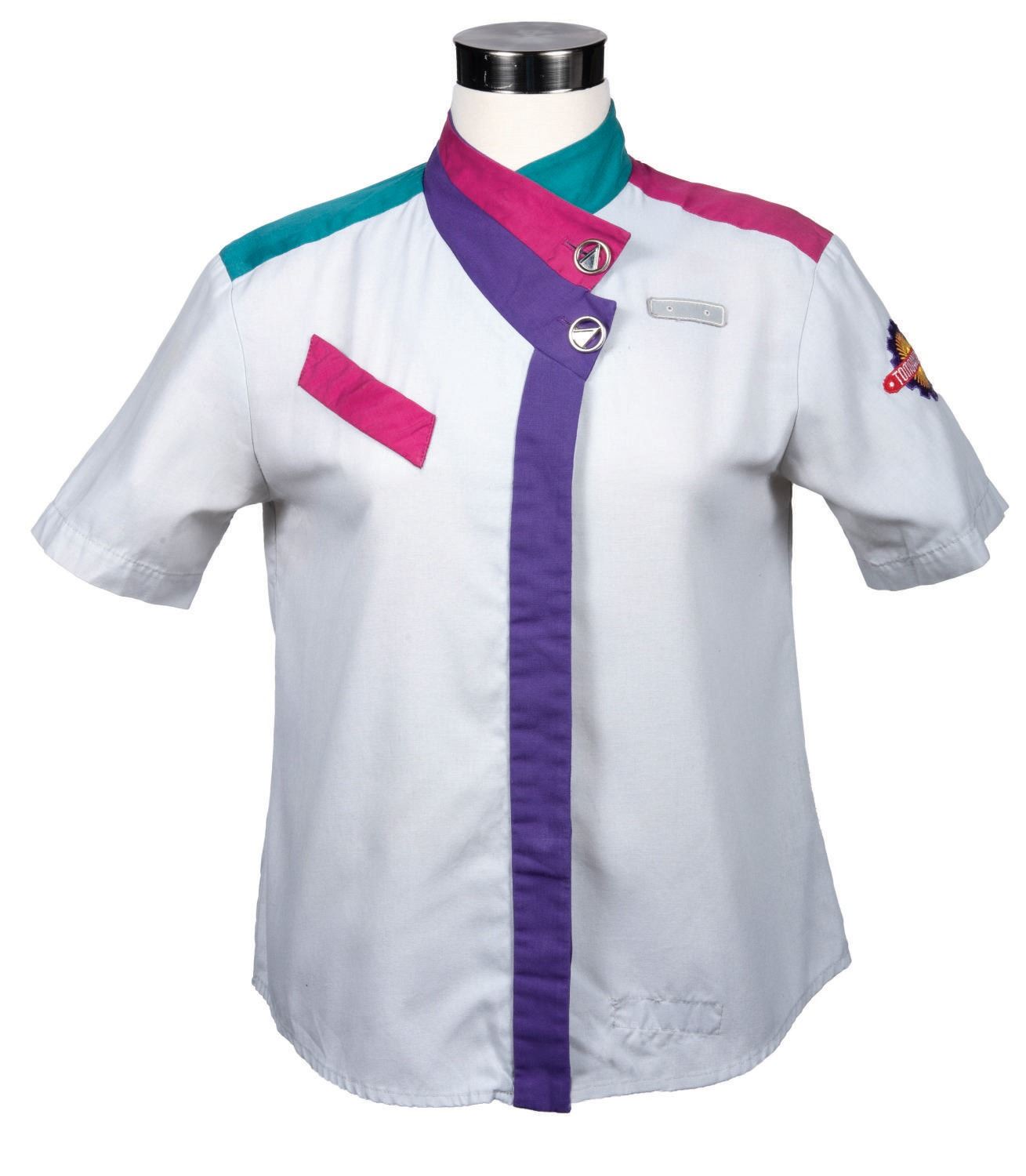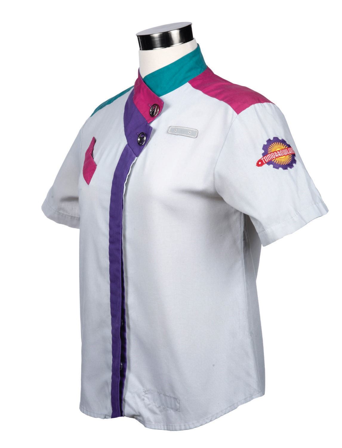 (Walt Disney World) A Tomorrowland Cast Member Shirt. Measuring a Size 6, the shirt is in very good condition with minor wear from use.