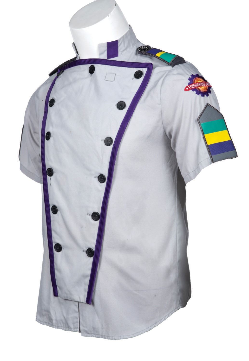 (Walt Disney World) A Tomorrowland Female Cast Member Shirt. Measuring a Size 4, the shirt is in very good condition with few loose threads and minor wear from use.