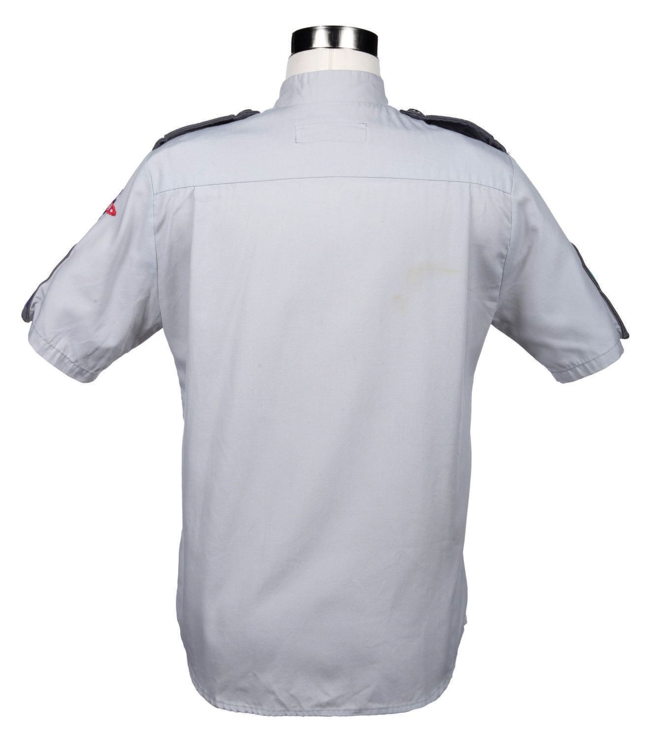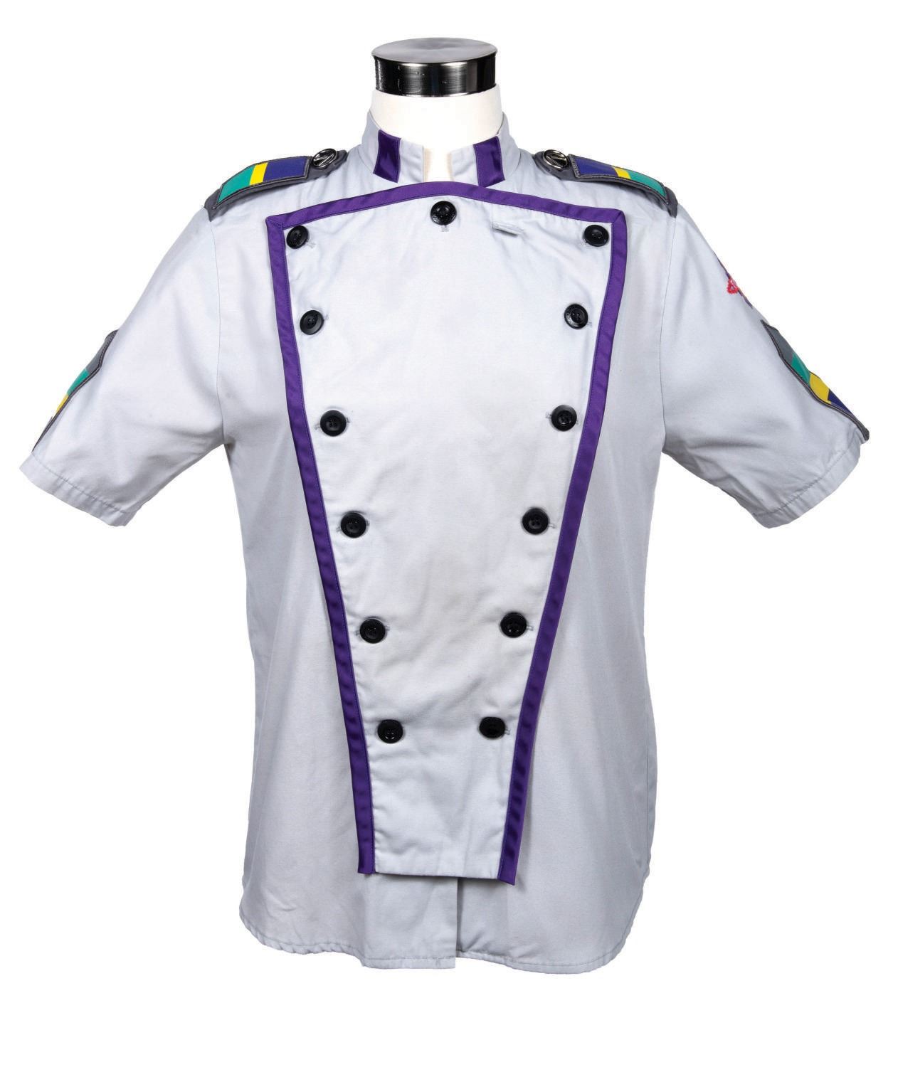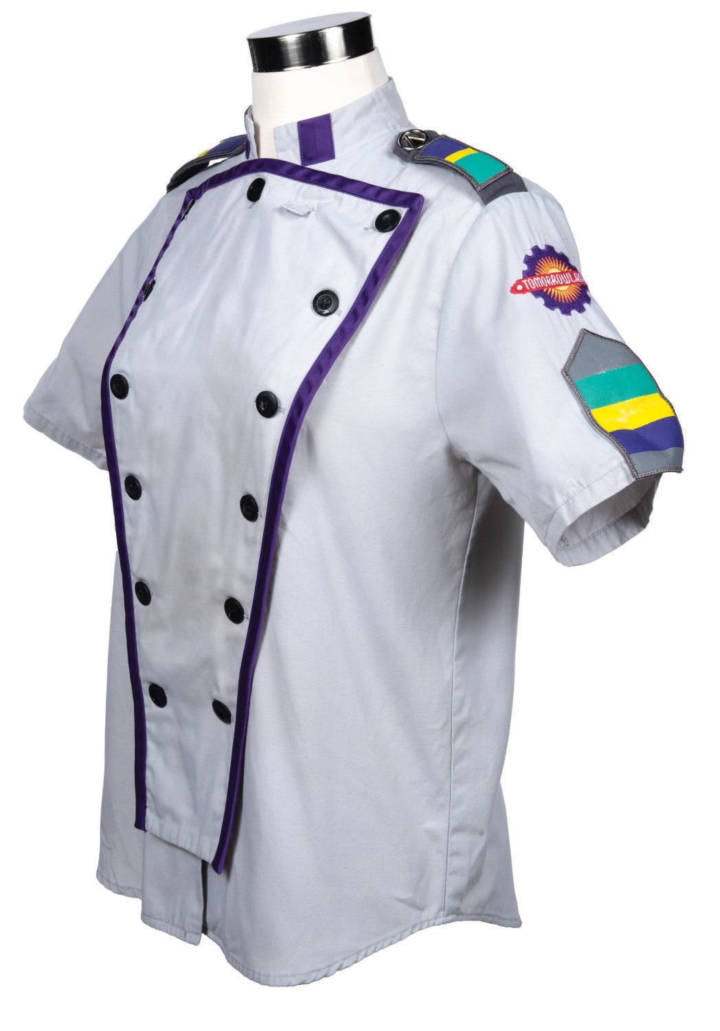 (Walt Disney World) A Tomorrowland Female Cast Member Shirt. Measuring a Female Size 6, the shirt is in very good condition with slight scuffs to the patches and minor wear from use.