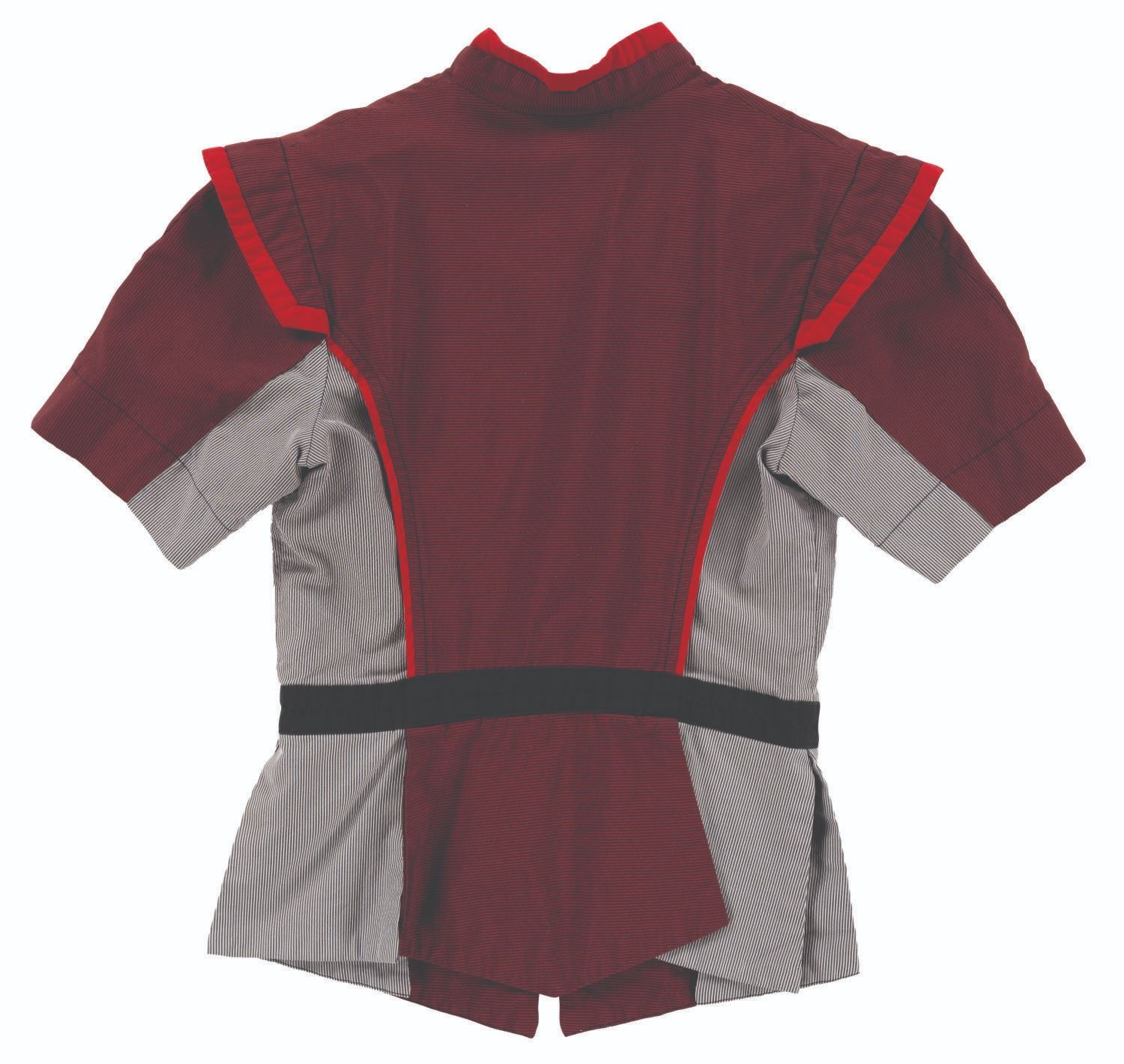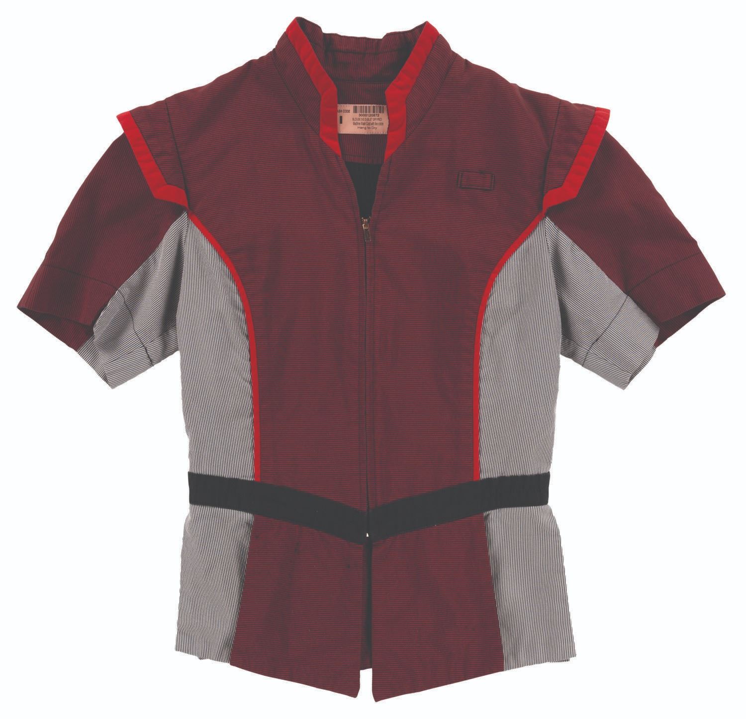 (Walt Disney World, 2000s) A shirt worn by Tomorrowland Outdoor Vending Hosts at the Magic Kingdom. Labeled a size female XS, the shirt is in good condition with pilling, discoloration from age, and wear from Park use.