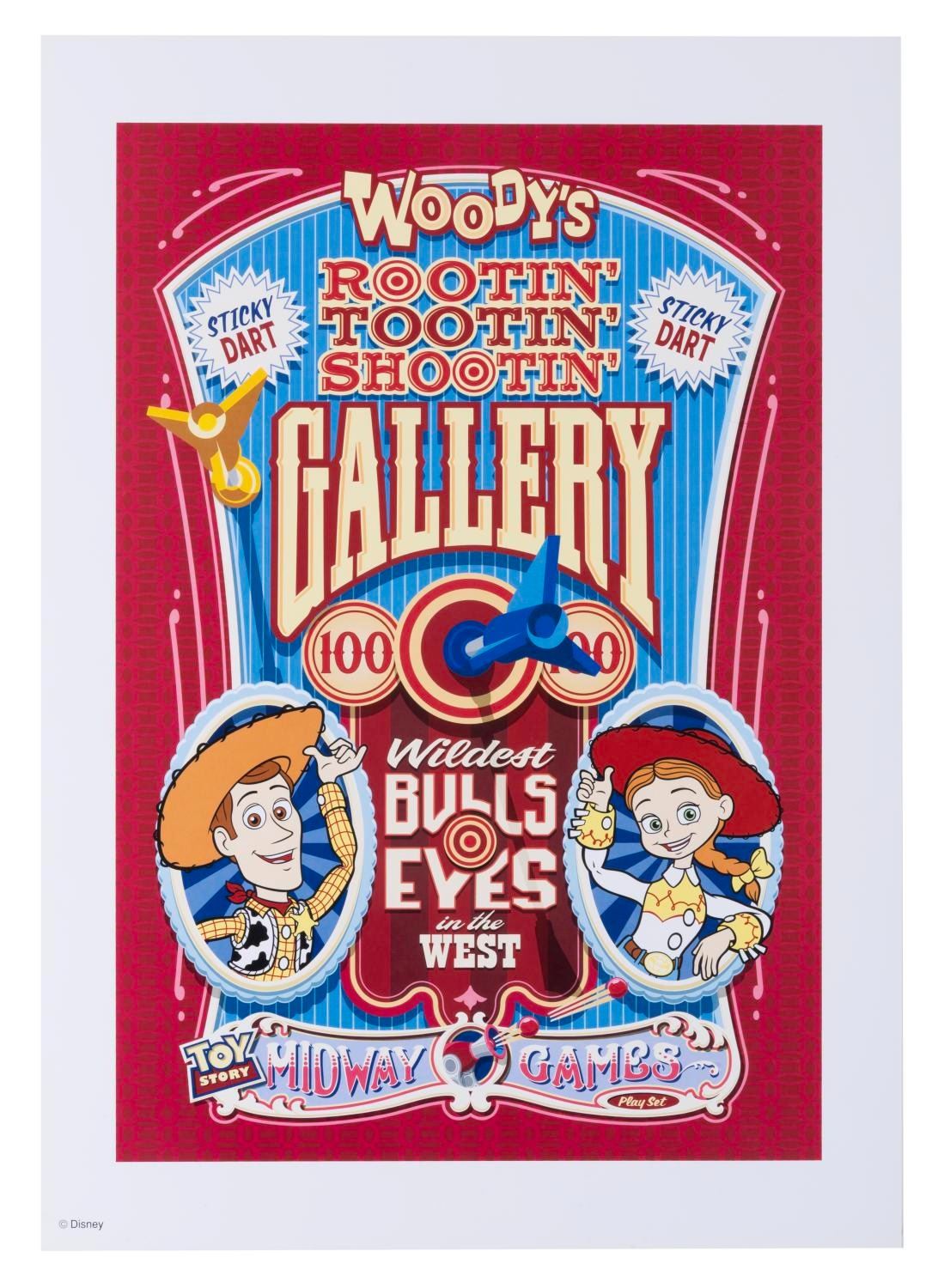 (Disney California Adventure, 2000s) A print of a Woody's Rootin' Tootin' Shootin' Gallery poster from Toy Story Midway Mania! With an image size of 9" x 13.25" and 11" x 15.5" total, the print is in fine condition.