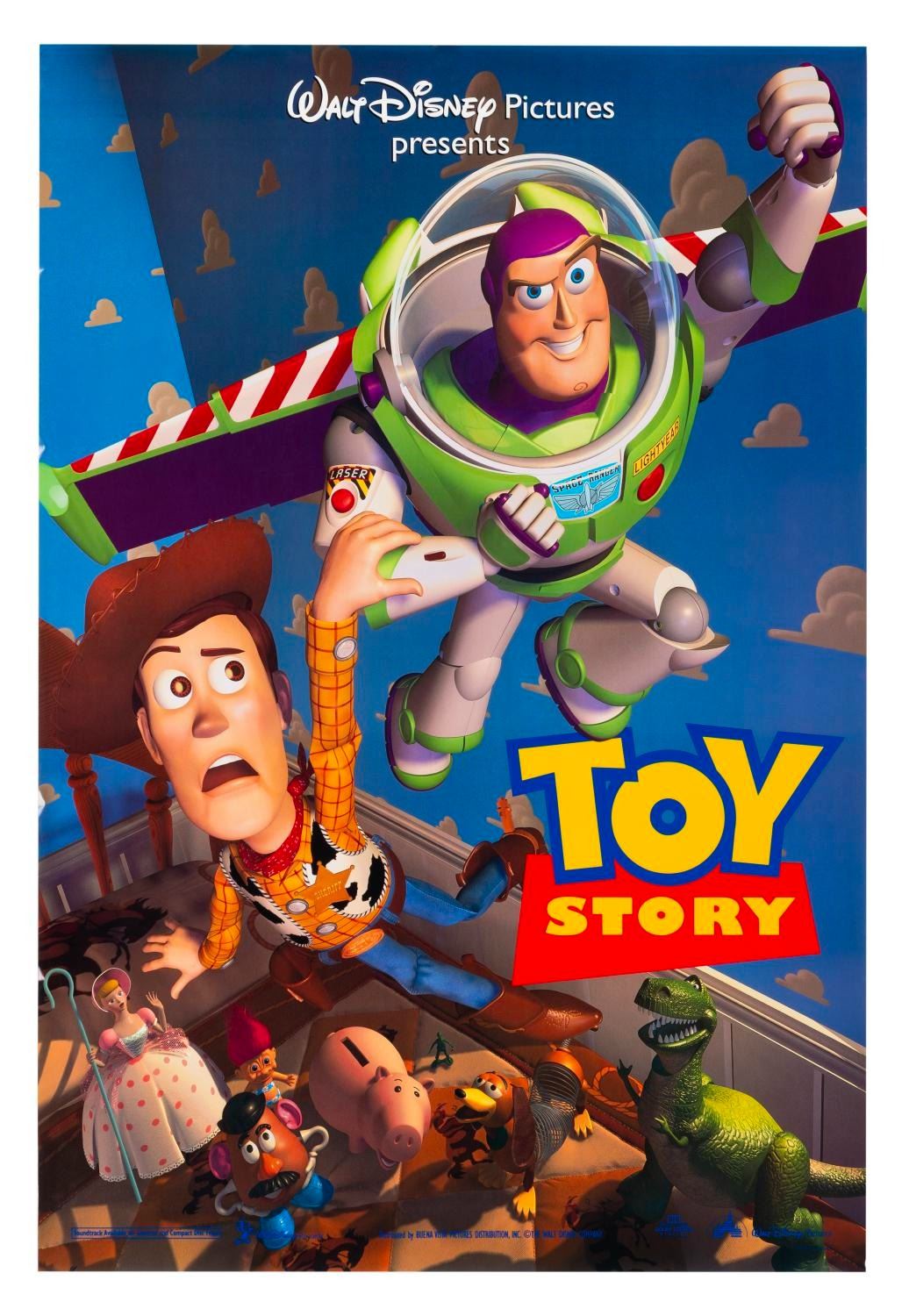 (Disney/Pixar, 1995) A one-sheet for the groundbreaking animated classic "Toy Story." Measuring 27" x 41", the poster is in very good condition with light edge wear mainly at the top left and right edges.