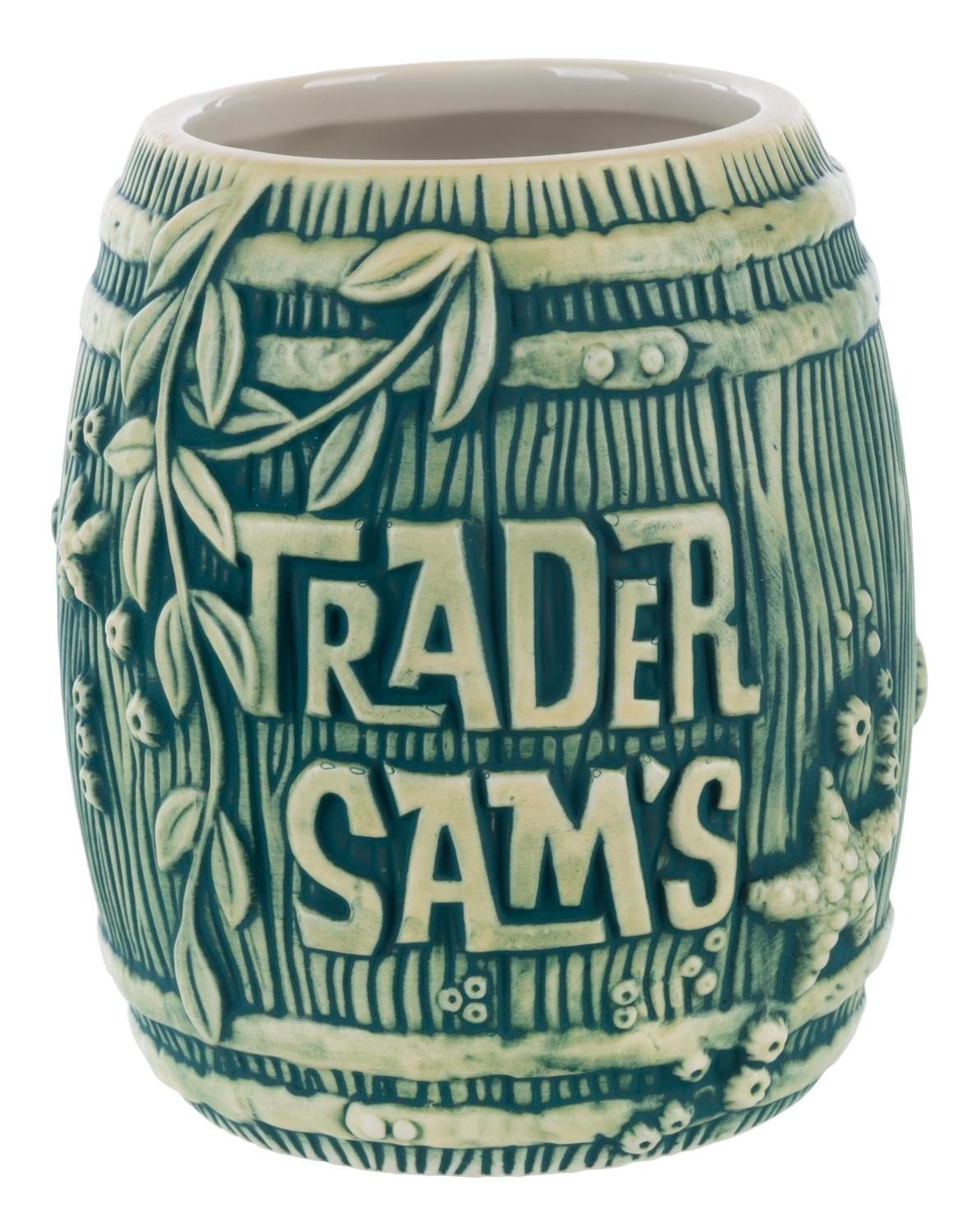 (Disneyland Hotel, 2019) A 4th edition Rum Barrel mug from Trader Sam’s Enchanted Tiki Bar, located in the Disneyland Hotel. At the heavily themed bar, the Shipwreck cocktail is served in this ceramic mug, designed by Tim Wollweber. Measuring 4.75" tall and 3.75" in diameter with its original box, the ceramic mug is in fine condition.