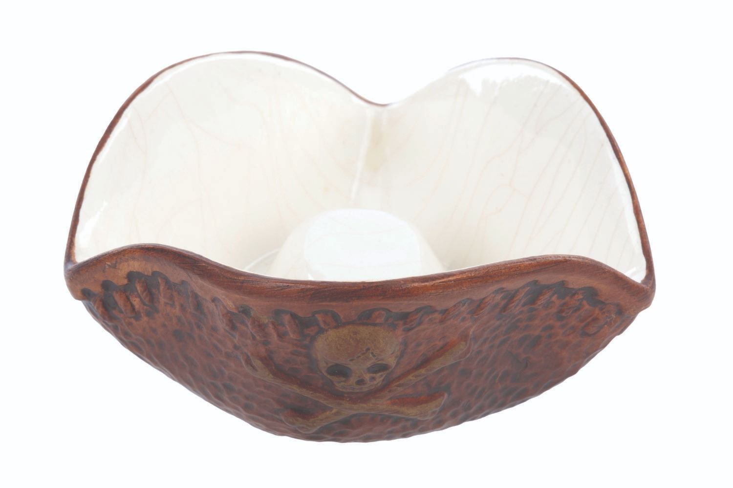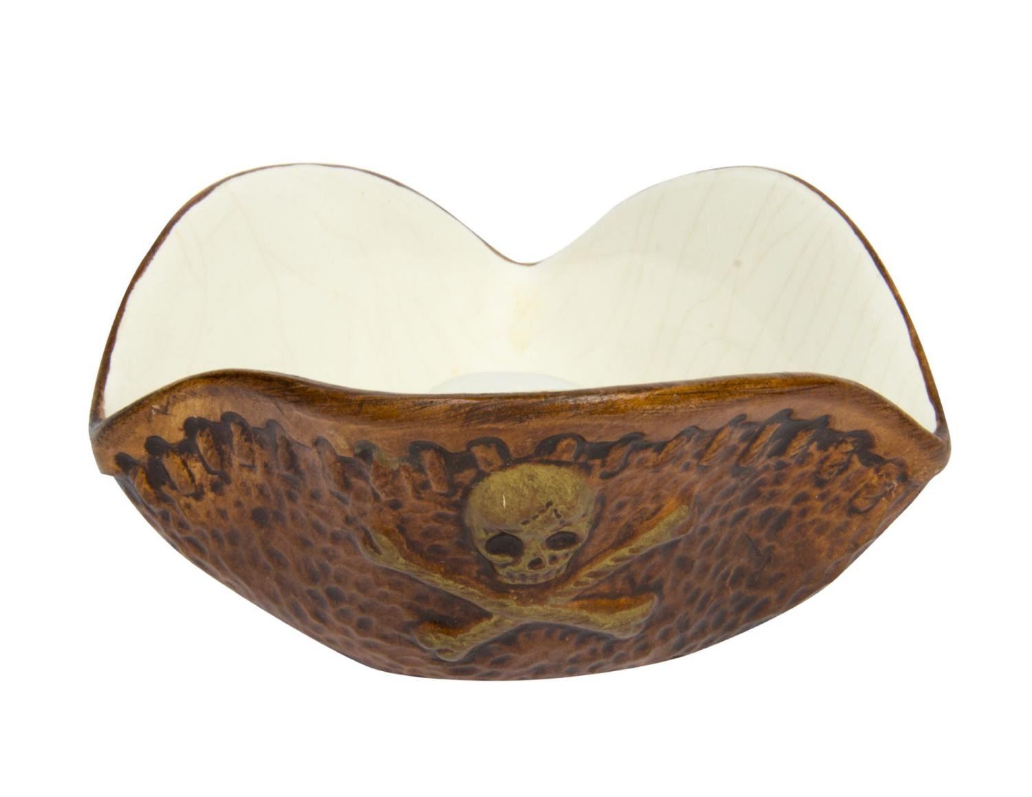 (Disneyland,1960s-1970s) A Ceramic Captain's Hat Trinket Bowl for Pirates of the Caribbean. Made by Treasure Craft, the bowl measures 5" diameter x 2.25" tall and is in good condition over all, with crazing to the white interior.