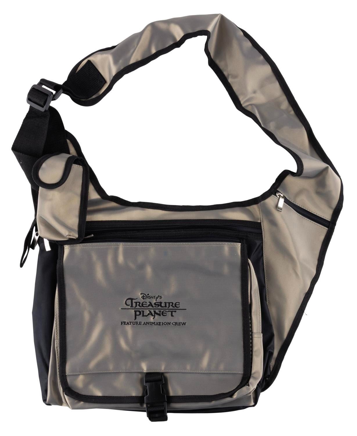 (Disney, 2002) A reflective shoulder bag gifted to the Disney "Treasure Planet" Animation Crew. Measuring 14" x 12.5" plus strap, the bag is in fine condition.